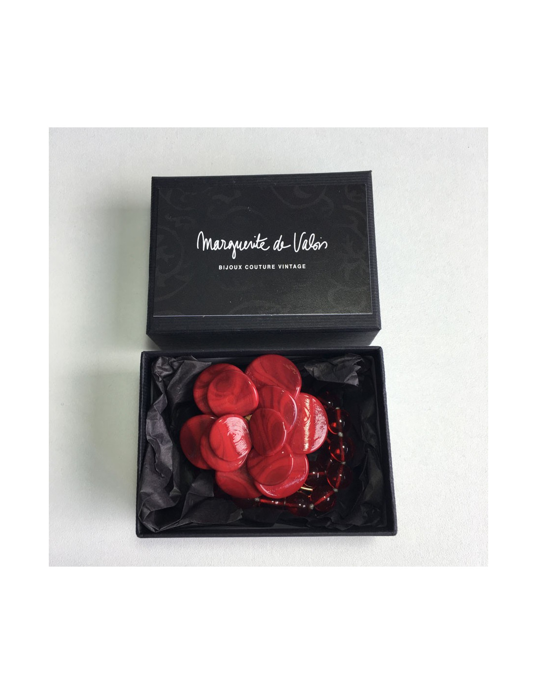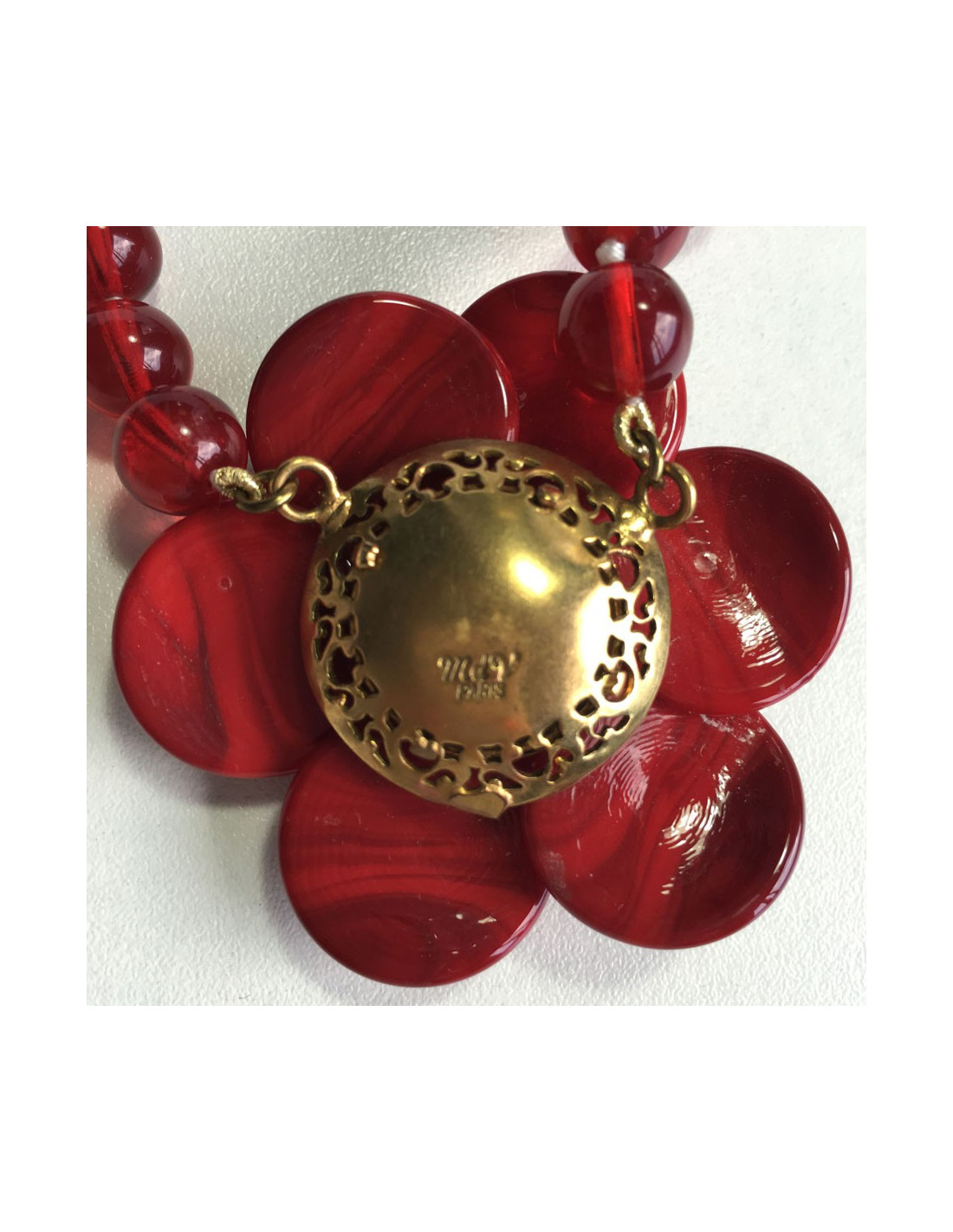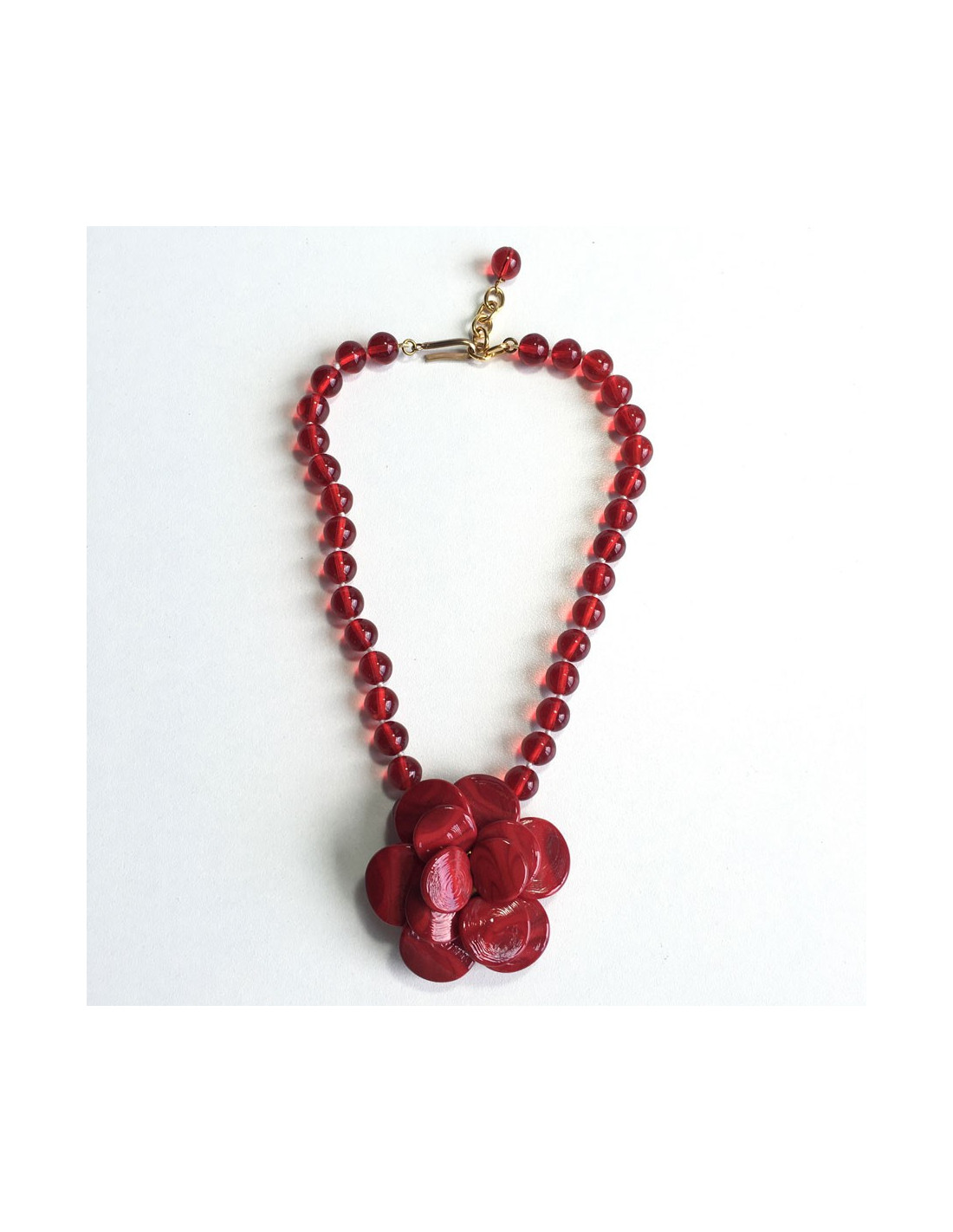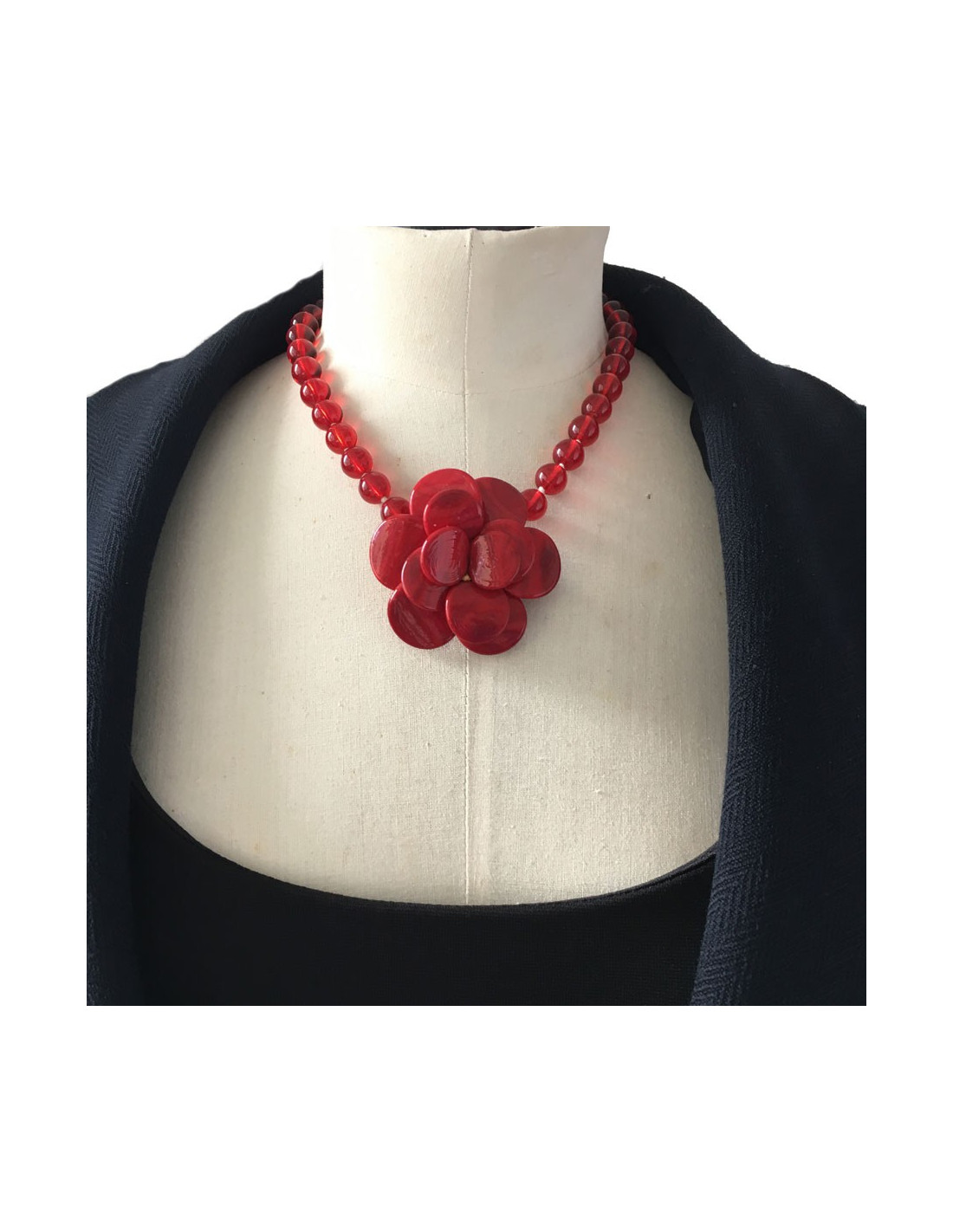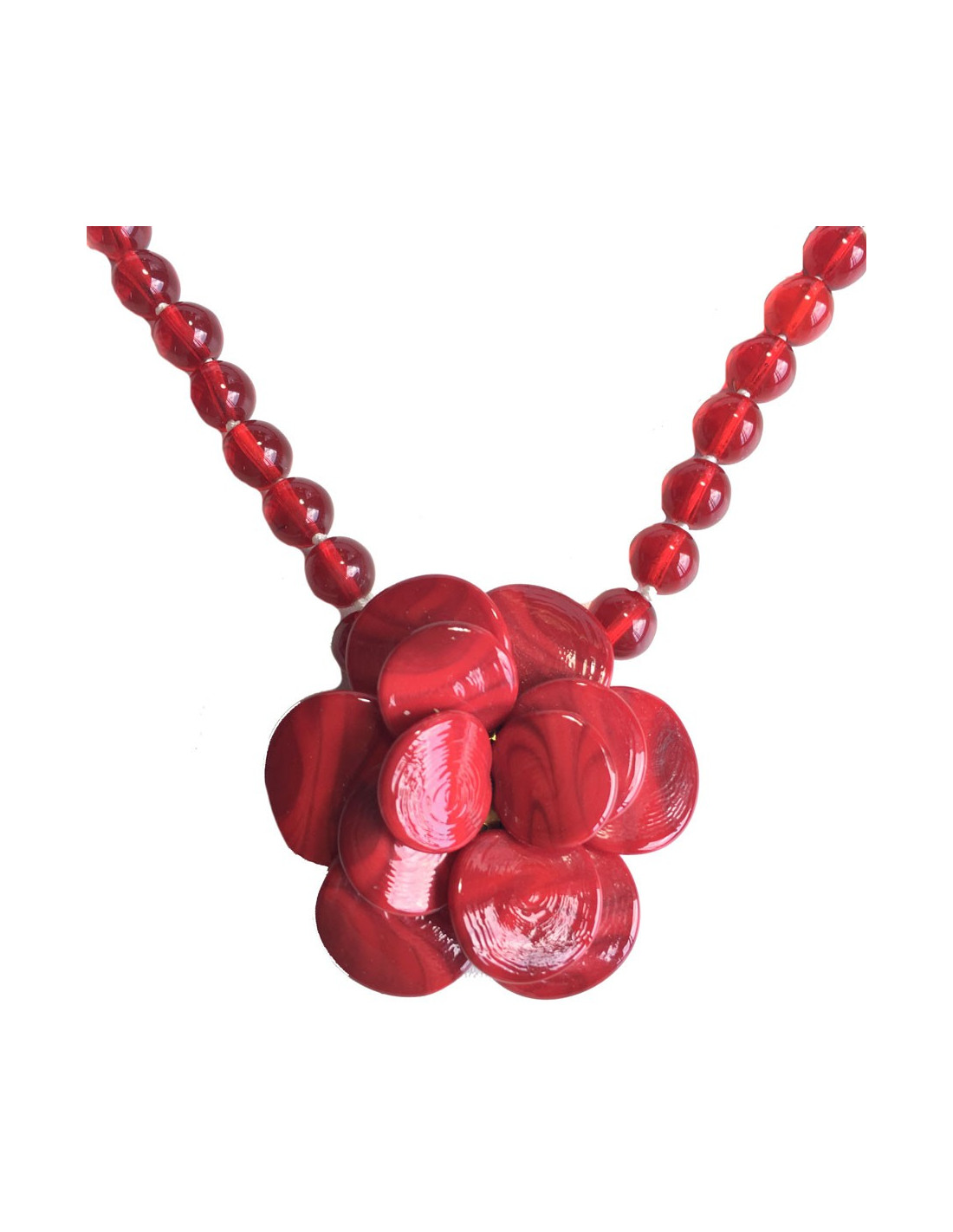Collier MARGUERITE de VALOIS camélia en pâte de verre rouge