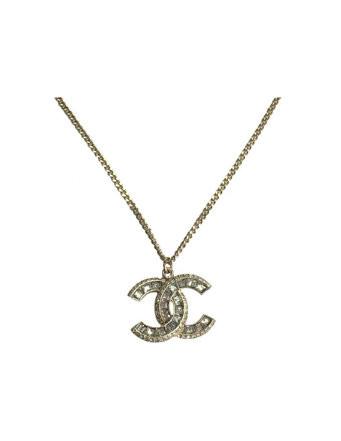 Collier Chanel pendentif CC en strassMatière : métal doré à l’or fin