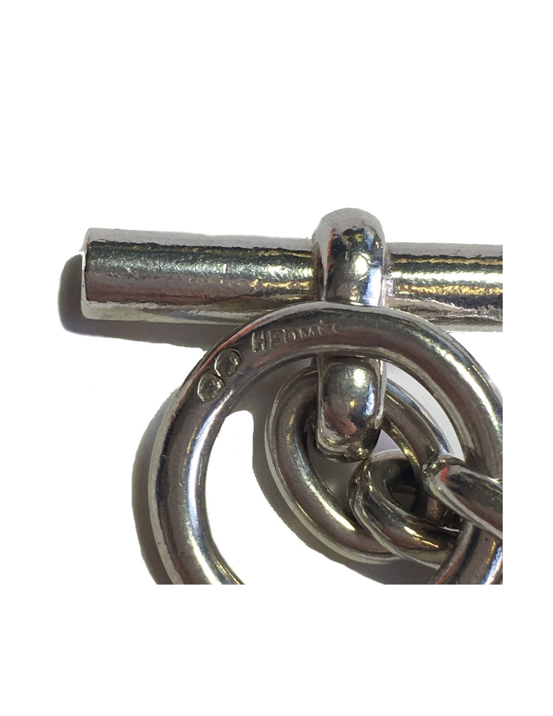 Cet élégant collier Hermès chaîne d’ancre est en argent massif 800, argent utilisé il y a de nombreuses années, à présent les bijoux Hermès sont réalisés en argent 925 millièmes. Sa particularité : les maillons sont plus larges au centre du bijou.