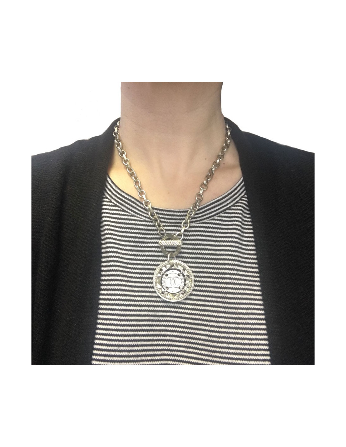 Ce collier CHANEL est comme neuf. La pastille de la marque est présente au dos de la médaille.