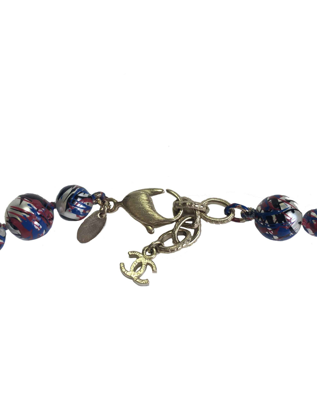 Sautoir CHANEL Airlines collection en perles nacrées, bleu blanc rouge