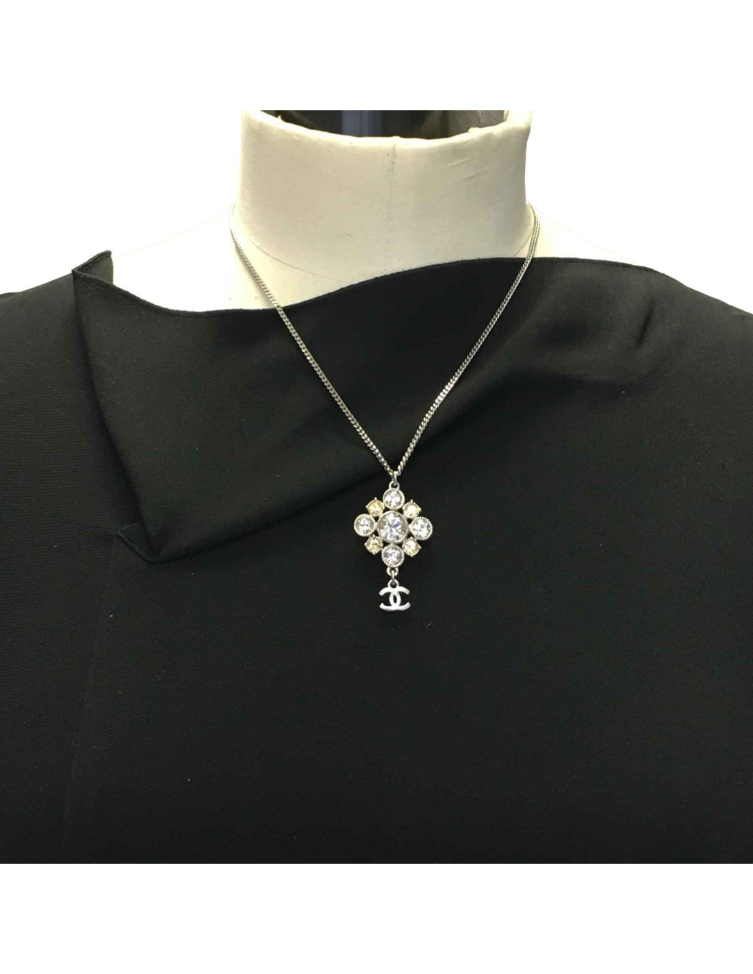 Collier CHANEL avec pendentif bijou strassé et cc