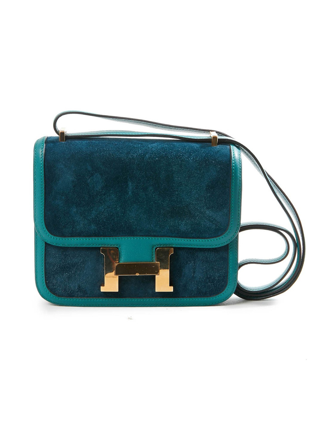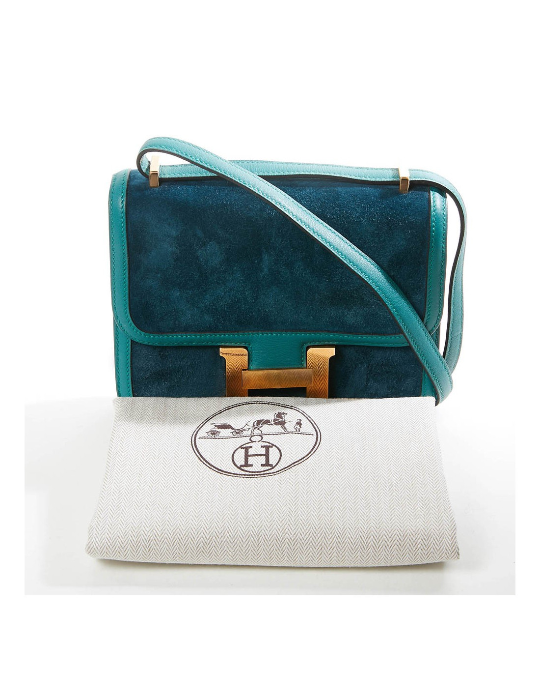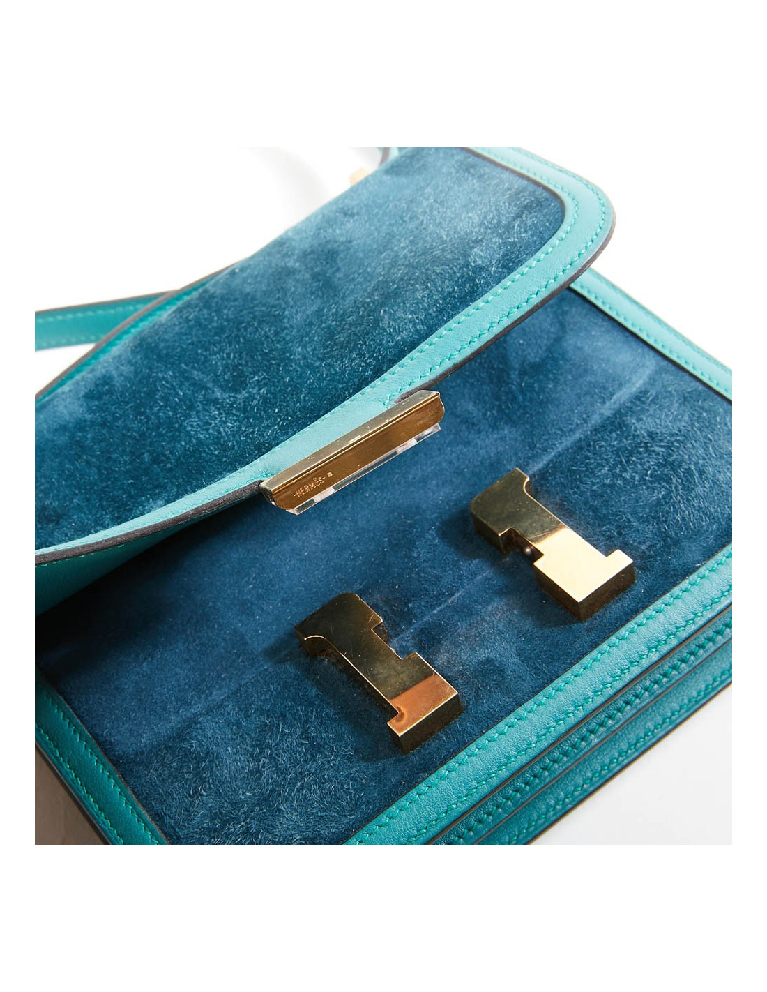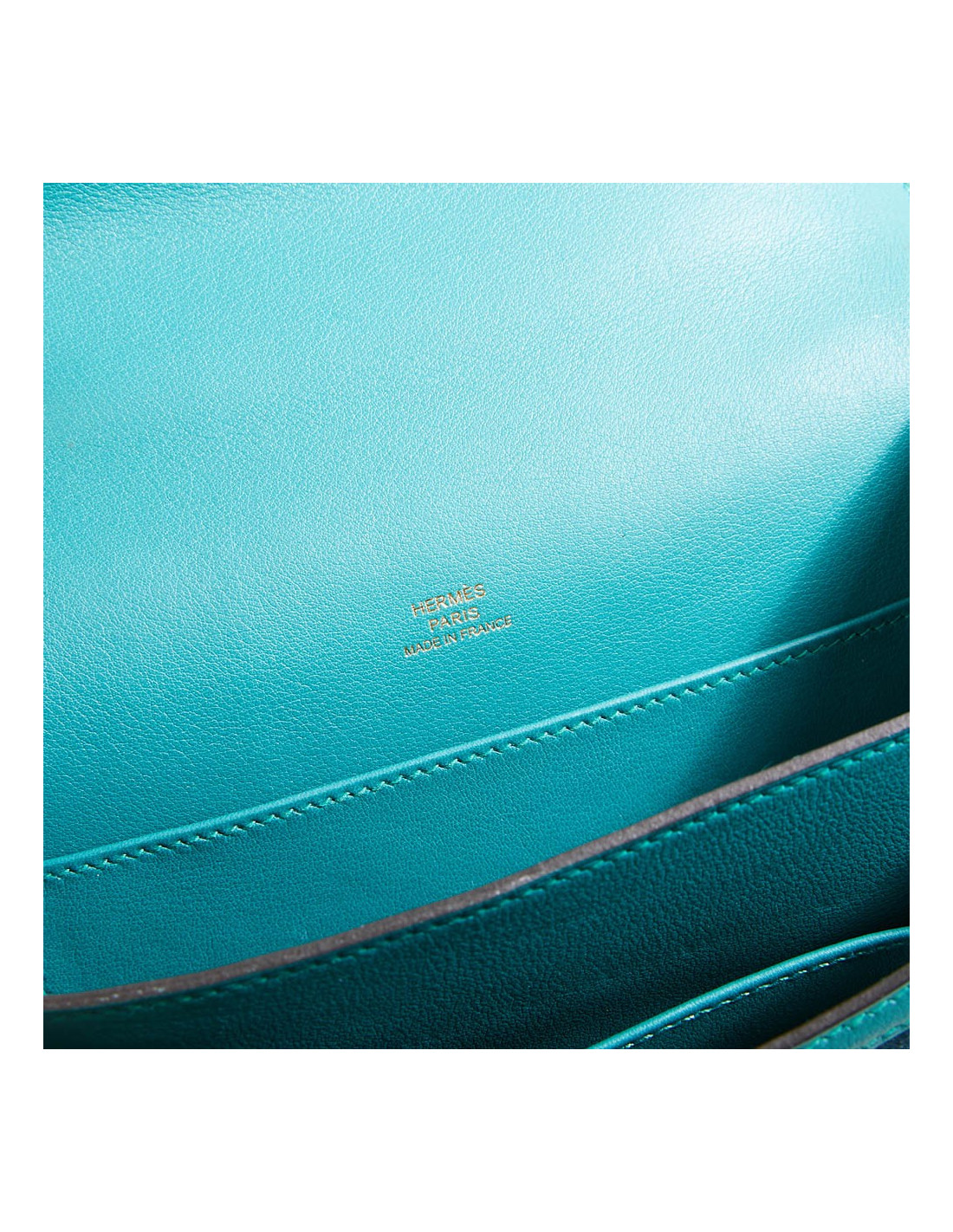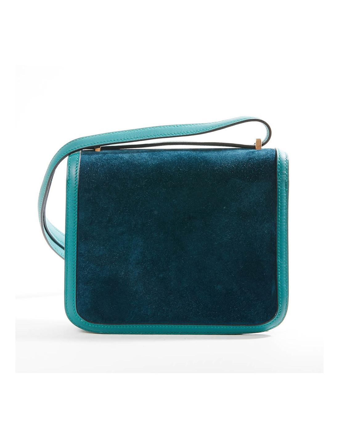Sac à main Constance HERMES cuir doblis vert malachite bleu océan