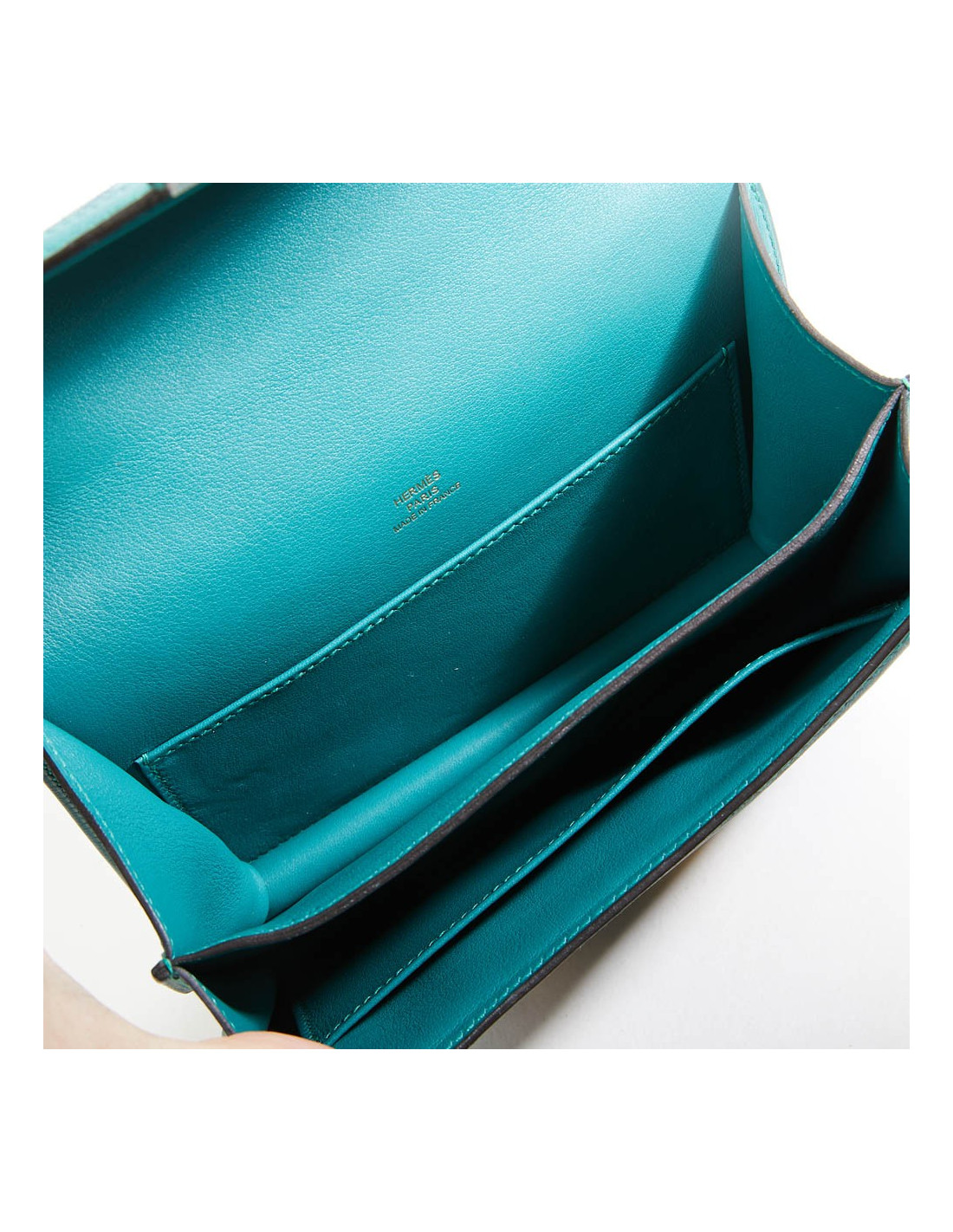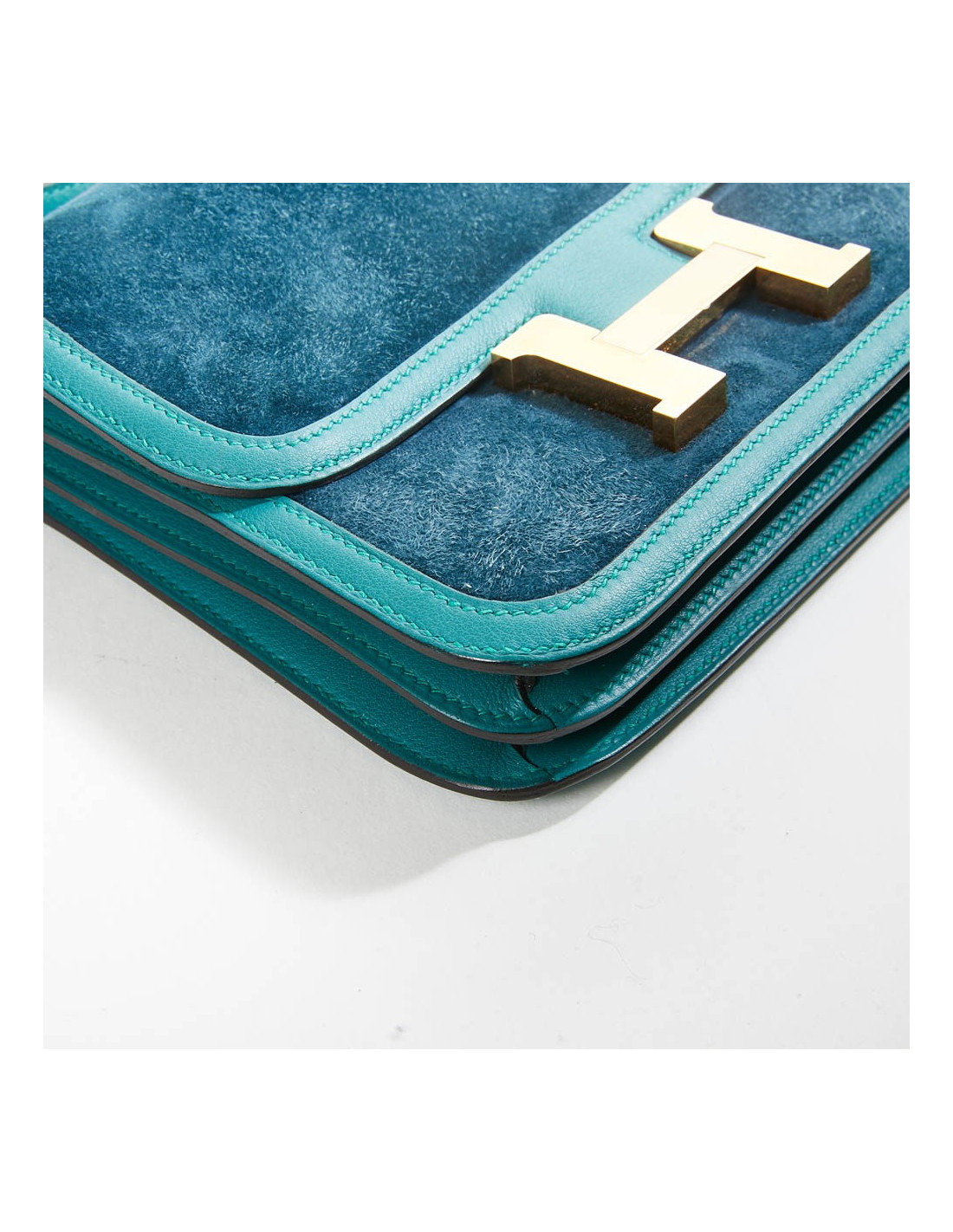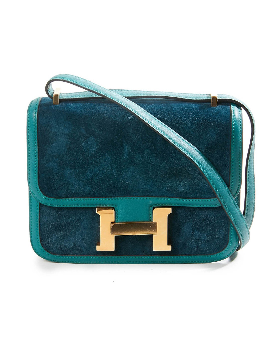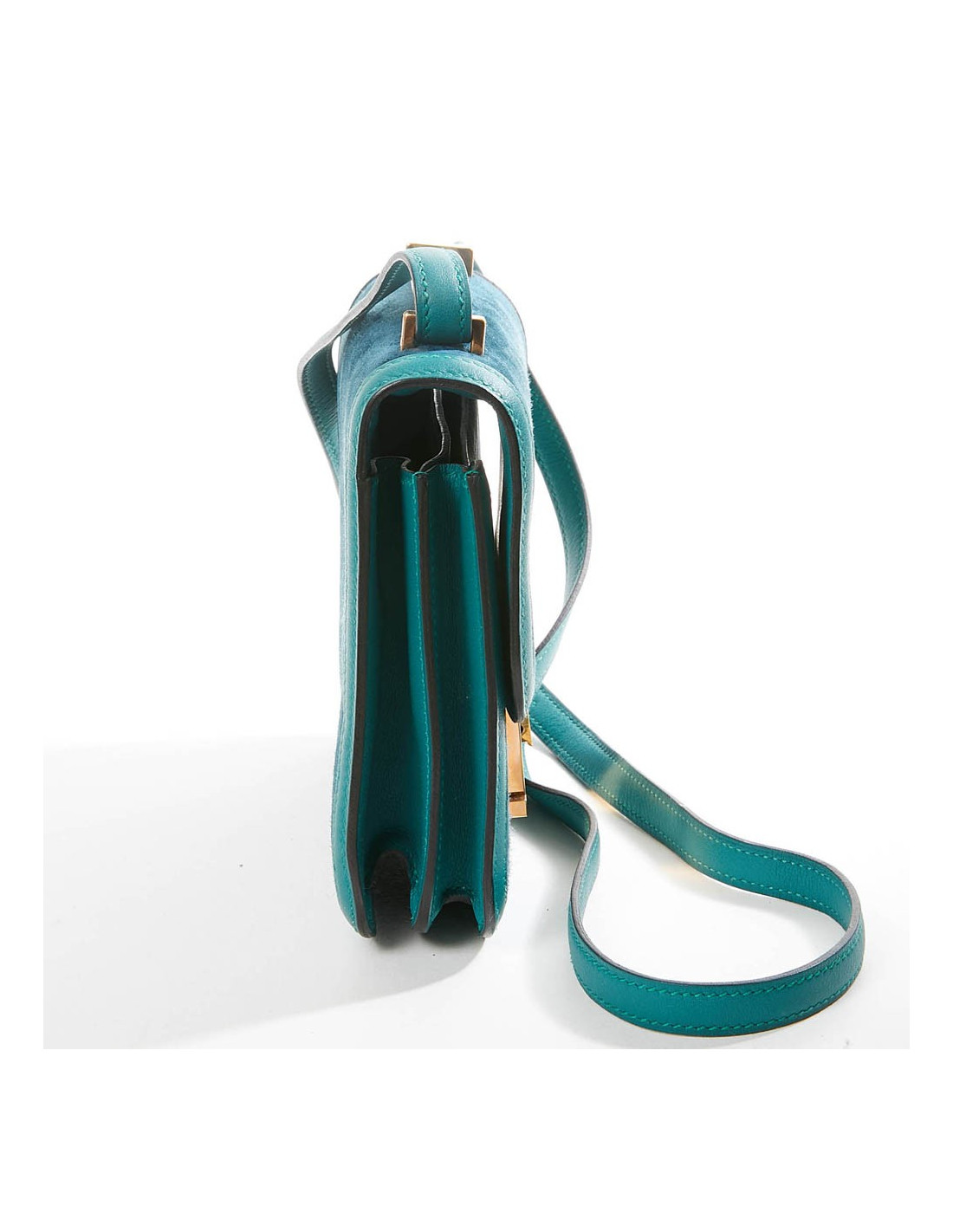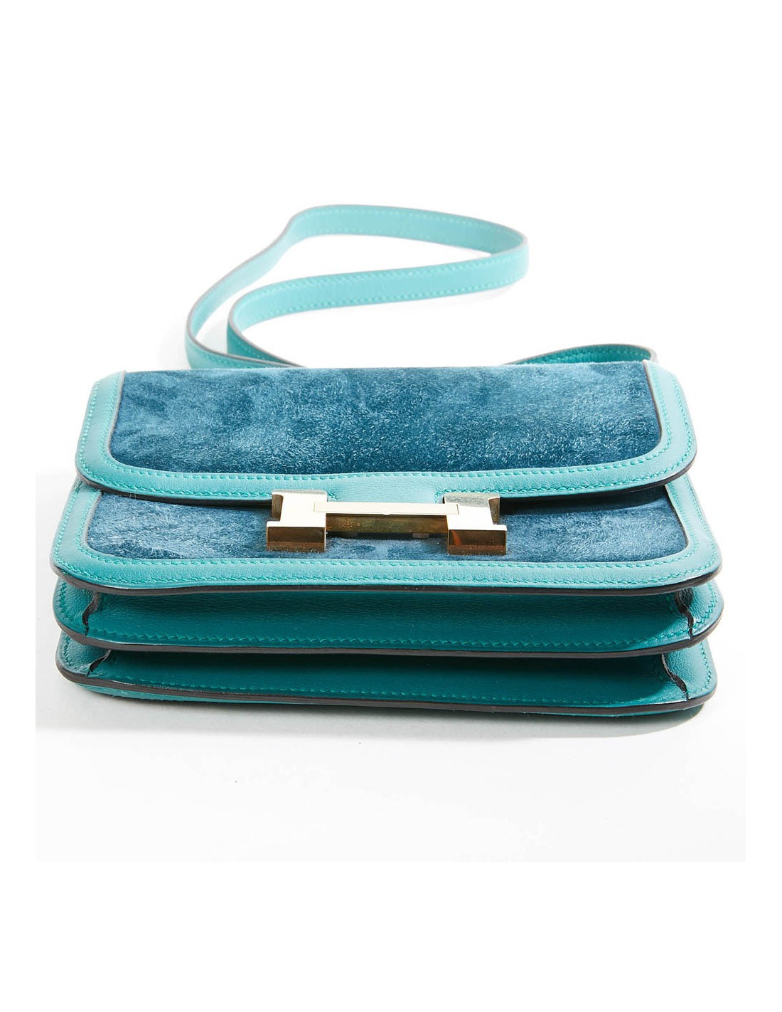 Sac à main Constance HERMES cuir doblis vert malachite bleu océan