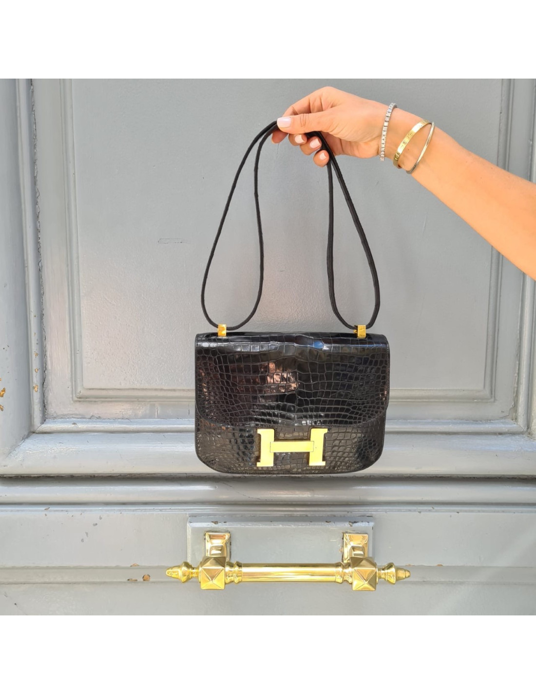 Nouveau Derniers articles en stock CONSTANCE HERMES Sac Hermès Constance crocodile porosus noir 18 HERMES 42663 17 900,00 € Sac Hermès Constance crocodile porosus Condition : très bon étatPays de fabrication : FranceModèle : ConstanceIntérieur : cuir lisse noirDimensions : 18 x 16 x 3 cmBandoulière : simple 104 cm, double 58 cmLettre : U dans un cercleAnnée : 1991Bijouterie : métal doré (micro-rayures) Ajouter au panier