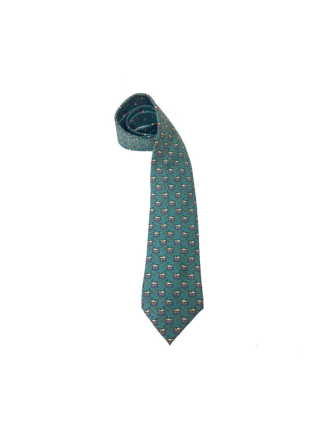 Cravate Hermès en soie bleue à motifs tambourin :