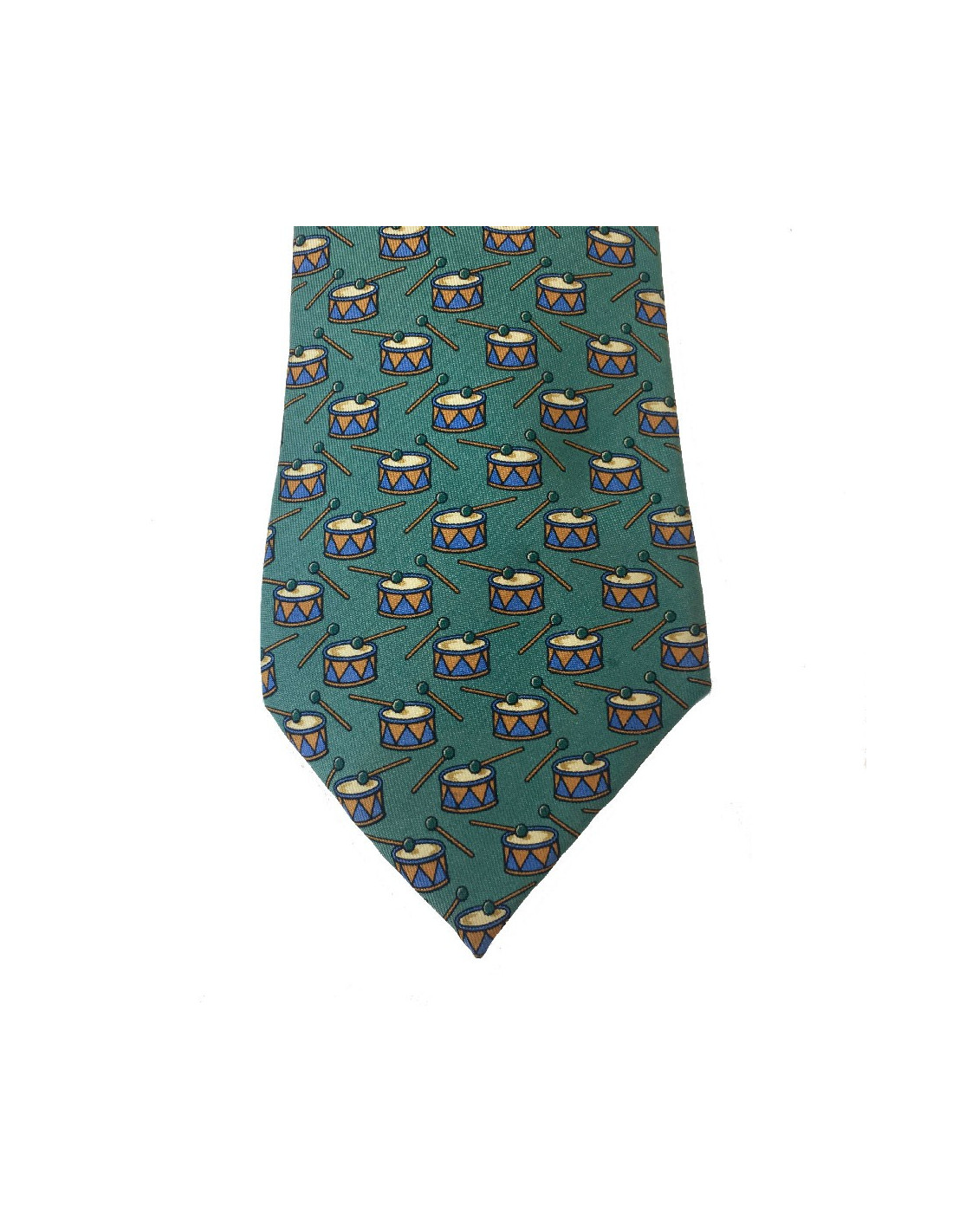 Cette Cravate HERMES est en soie. Elle a un motif tambourin. Elle est en très bon état. On retrouve un camaïeu bleu, beige et ocre.