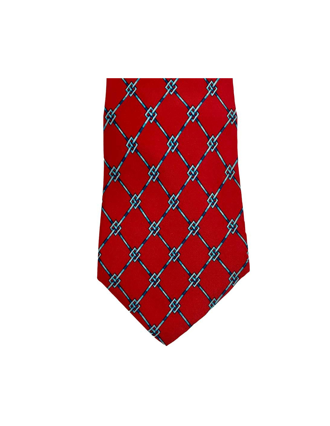 Une cravate authentique et certifiée HERMES made in France. De couleur rouge et aux lignes géométriques, elle donnera une touche vintage à votre tenue, que ce soit sur votre costume, messieurs, ou sur votre chemisier, mesdames!.