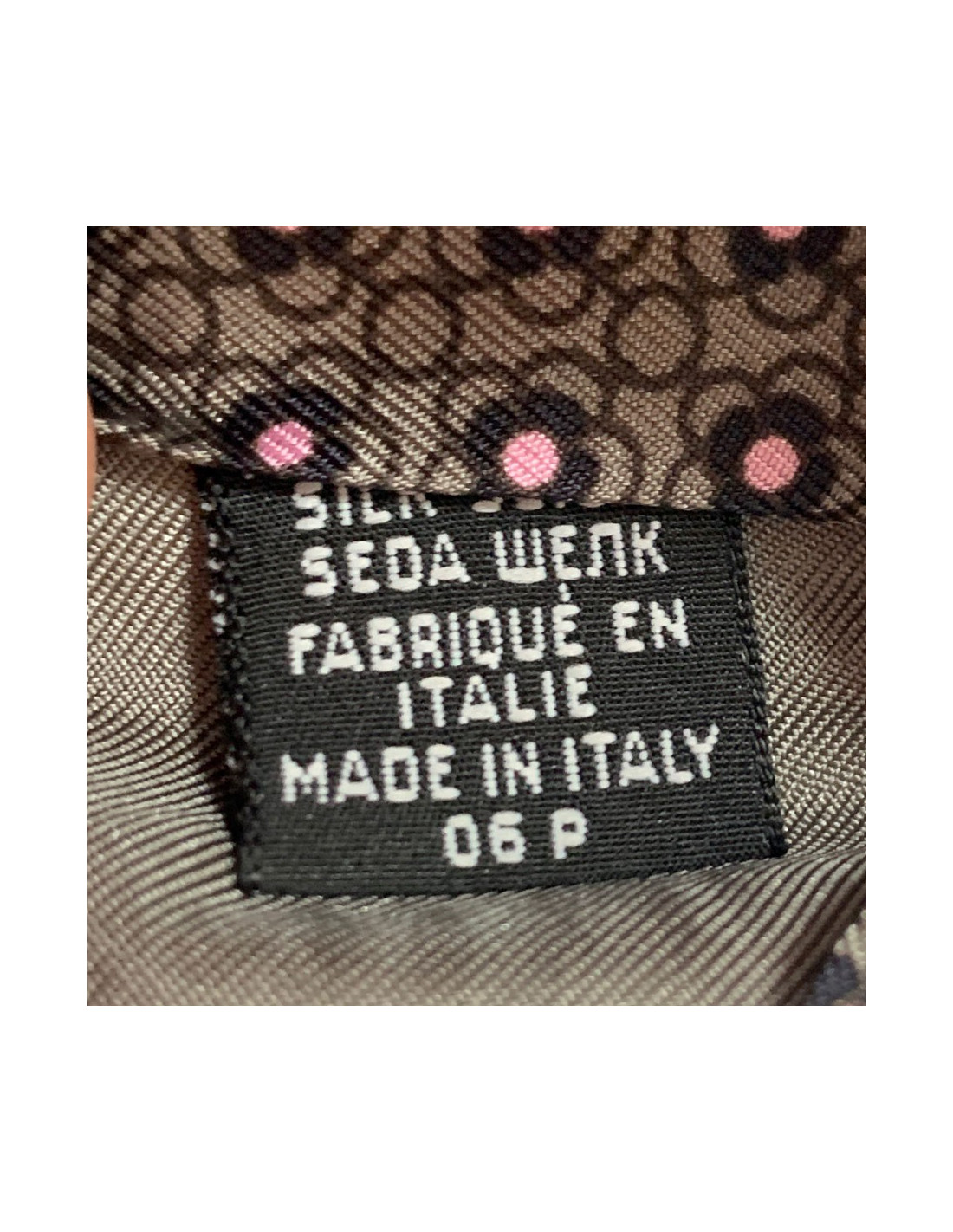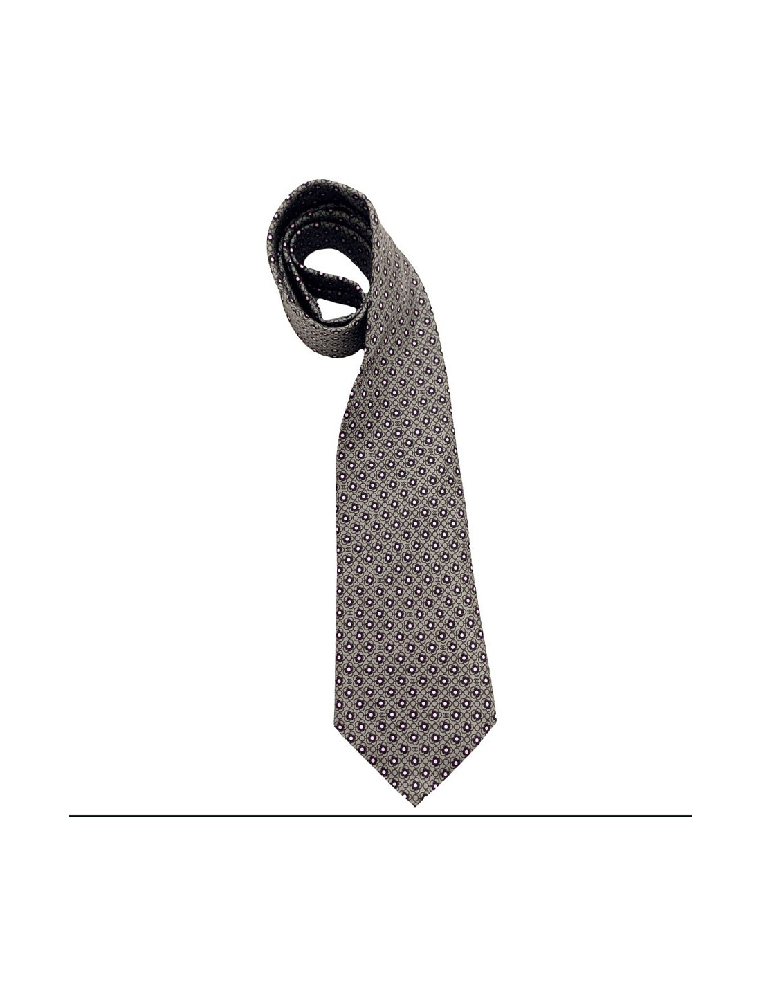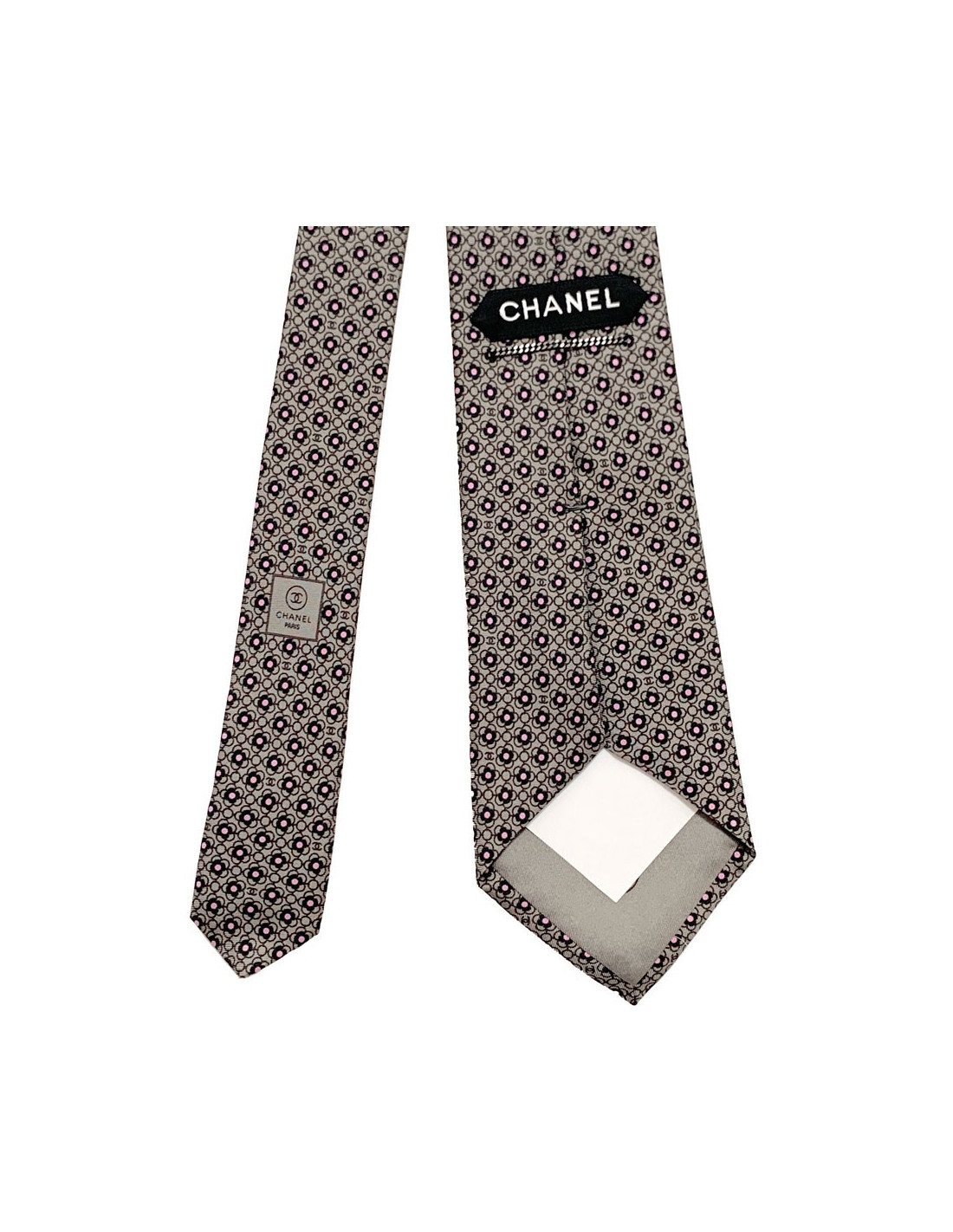Très belle cravate CHANEL, en soie grise à motif camélias rose. Elégante, elle apportera une touche chic à votre tenue.