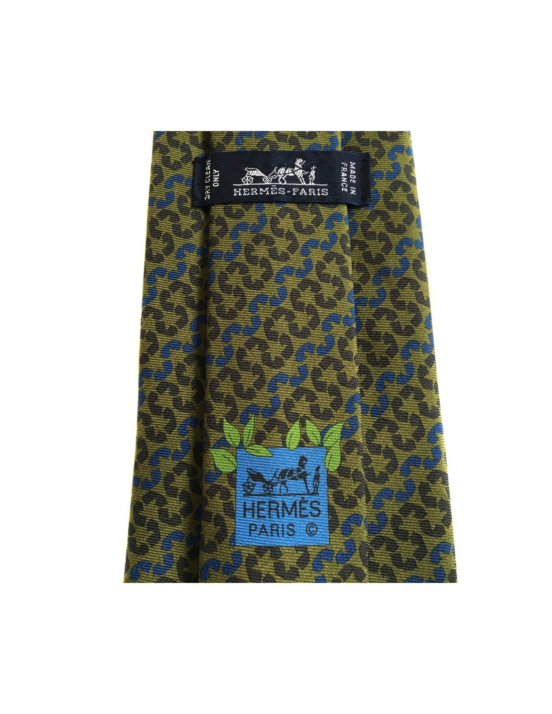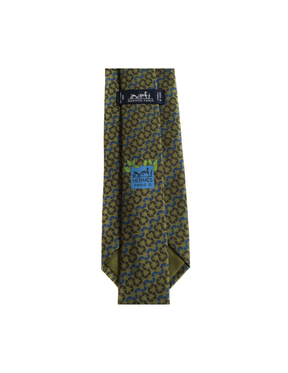Cravate HERMES en soie Kaki motifs flèches - détails :