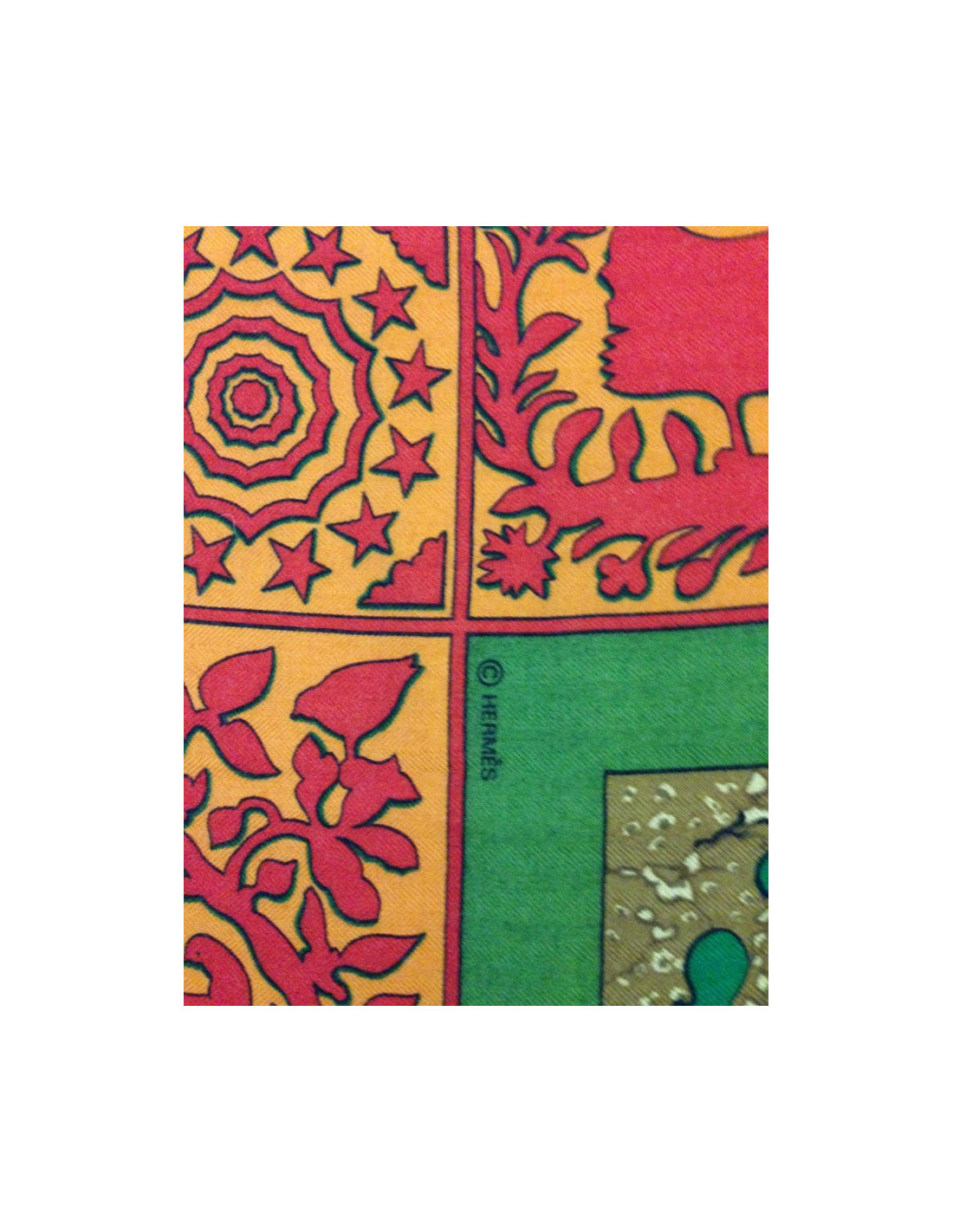 Châle "Early America" HERMÈS cachemire et soie rouge, vert