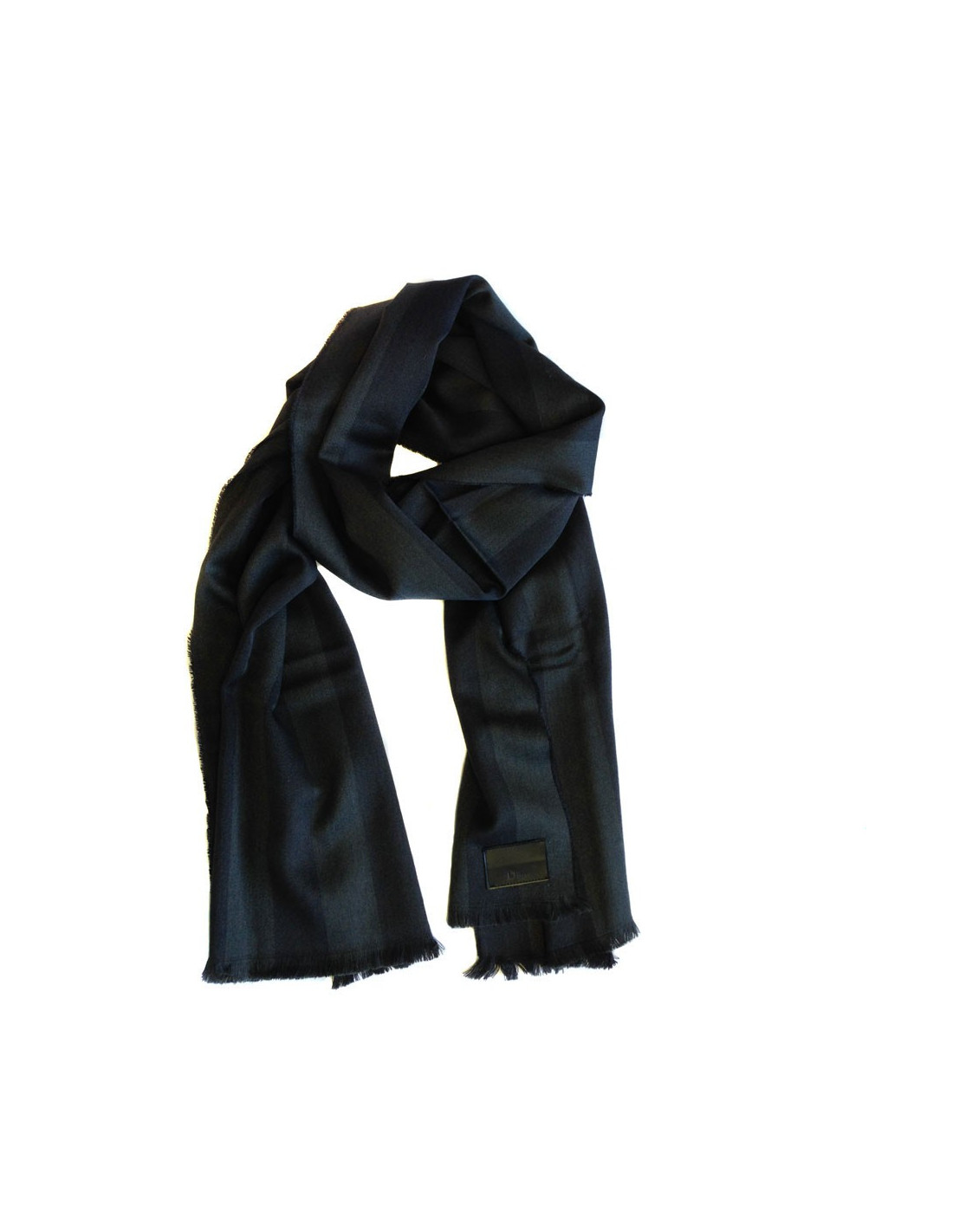 Echarpe DIOR gris anthracite à bord frangé en laine et soie