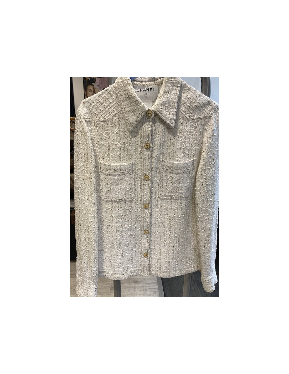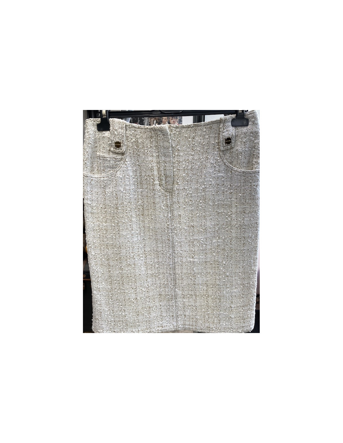 Derniers articles en stock ENSEMBLE Ensemble CHANEL Paris-Bombay CHANEL 34426 9 500,00 € Ensemble CHANEL Paris-Bombay veste et jupe Condition : très bon étatPays de fabrication : FranceTaille : 40FRMatière : tweedDoublure : soie écrueCouleur : écru, détails argentéTaille : Jupe T36 / Veste T40Dimensions à plat :Veste : épaules 40 cm, sous la poitrine 46 cm, hauteur 55 cm, longueur des manches 56 cm, tour de poignet 25 cmJupe : longueur 43... Ajouter au panier