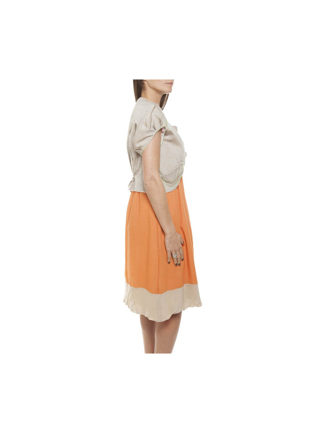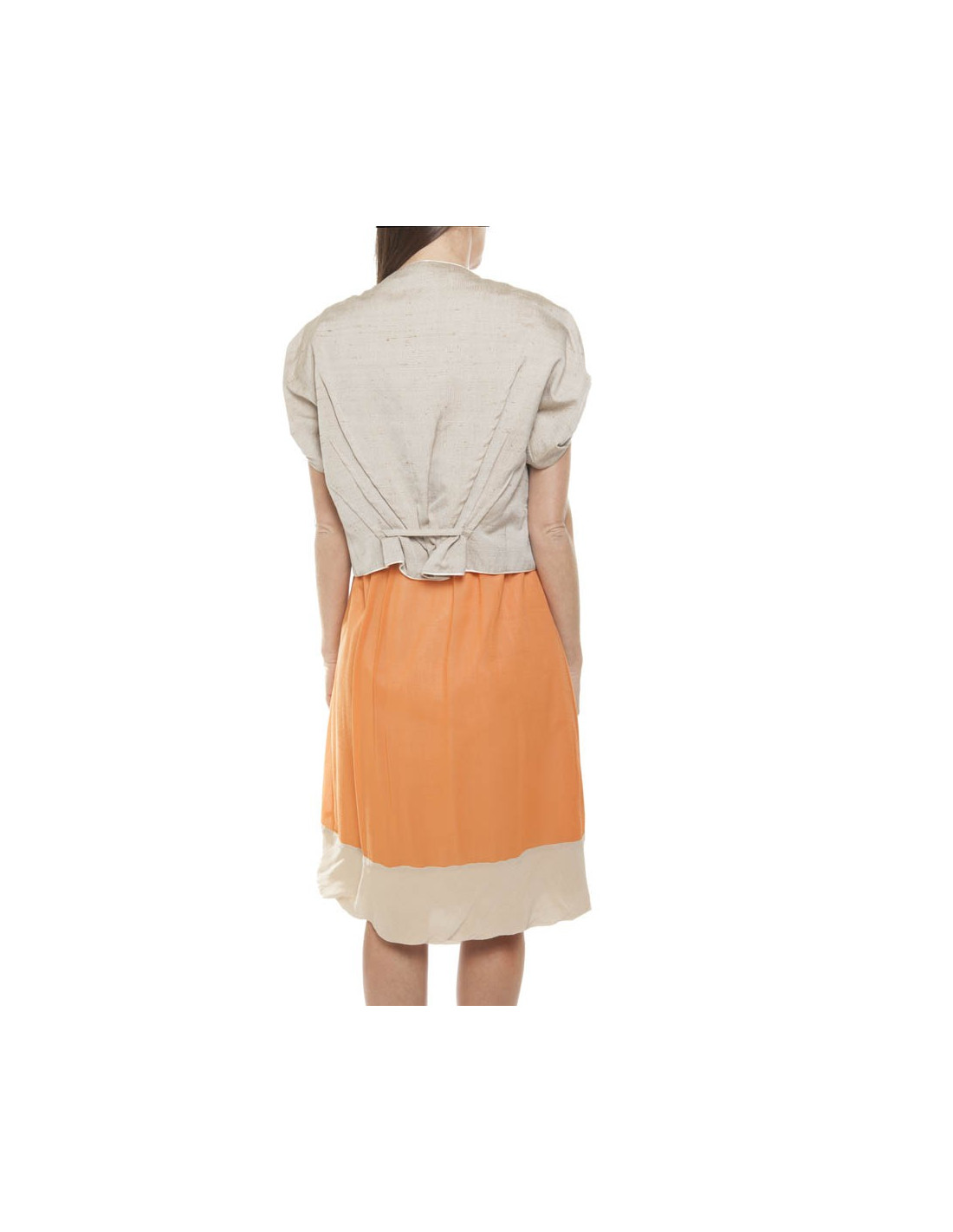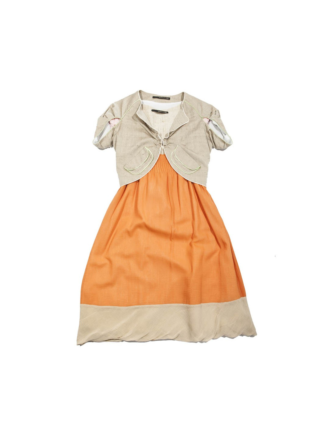 Ensemble Maurizio PECORARO, taille 36 (étiquette), robe avec doublure en coton et gilet court, en coton et soie (étiquette de matière).