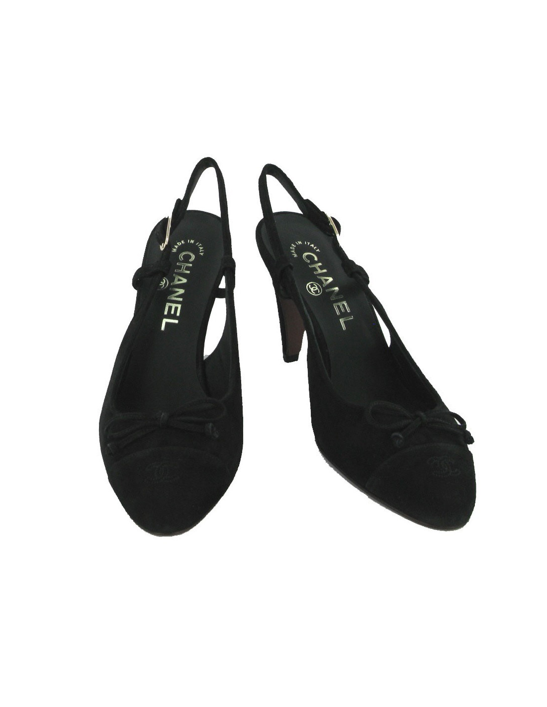 Escarpins CHANEL T39 veau velours noir et bout argenté