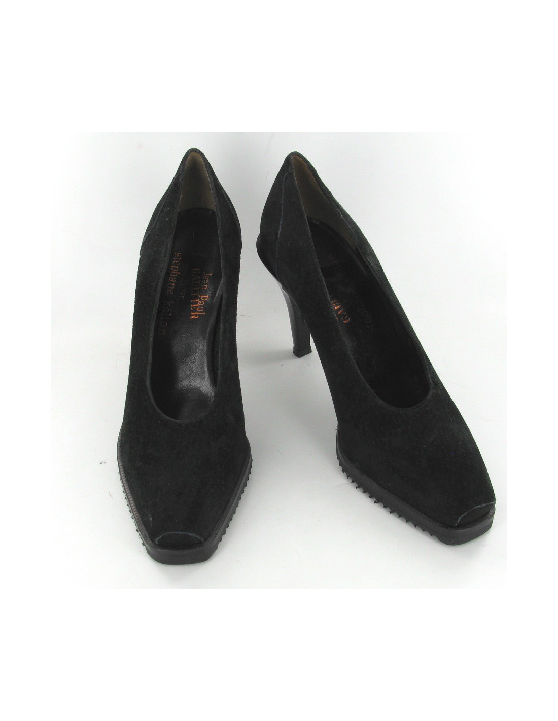Magnifiques escarpins vintage en daim noir JEAN PAUL GAULTHIER pour STEPHANE KELIAN. Ils sont de taille 6 UK ce qui correspond à une taille 39. Ils n'ont jamais été portés. La semelle est en cuir et caoutchouc.