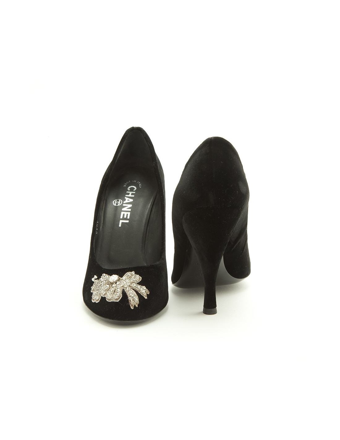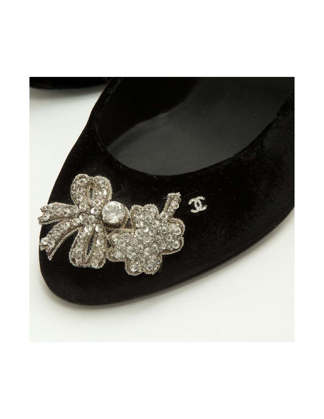 Escarpins CHANEL Couture T 37.5 velours noir et broderies
