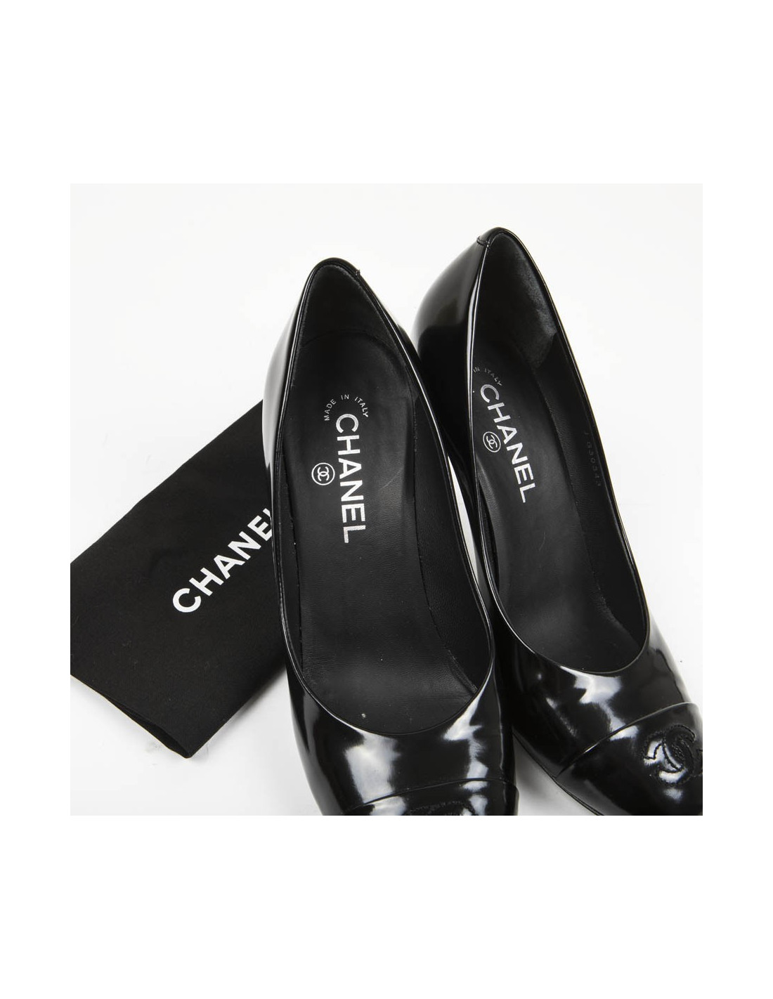 Escarpins T 39.5 CHANEL cuir verni mat noir