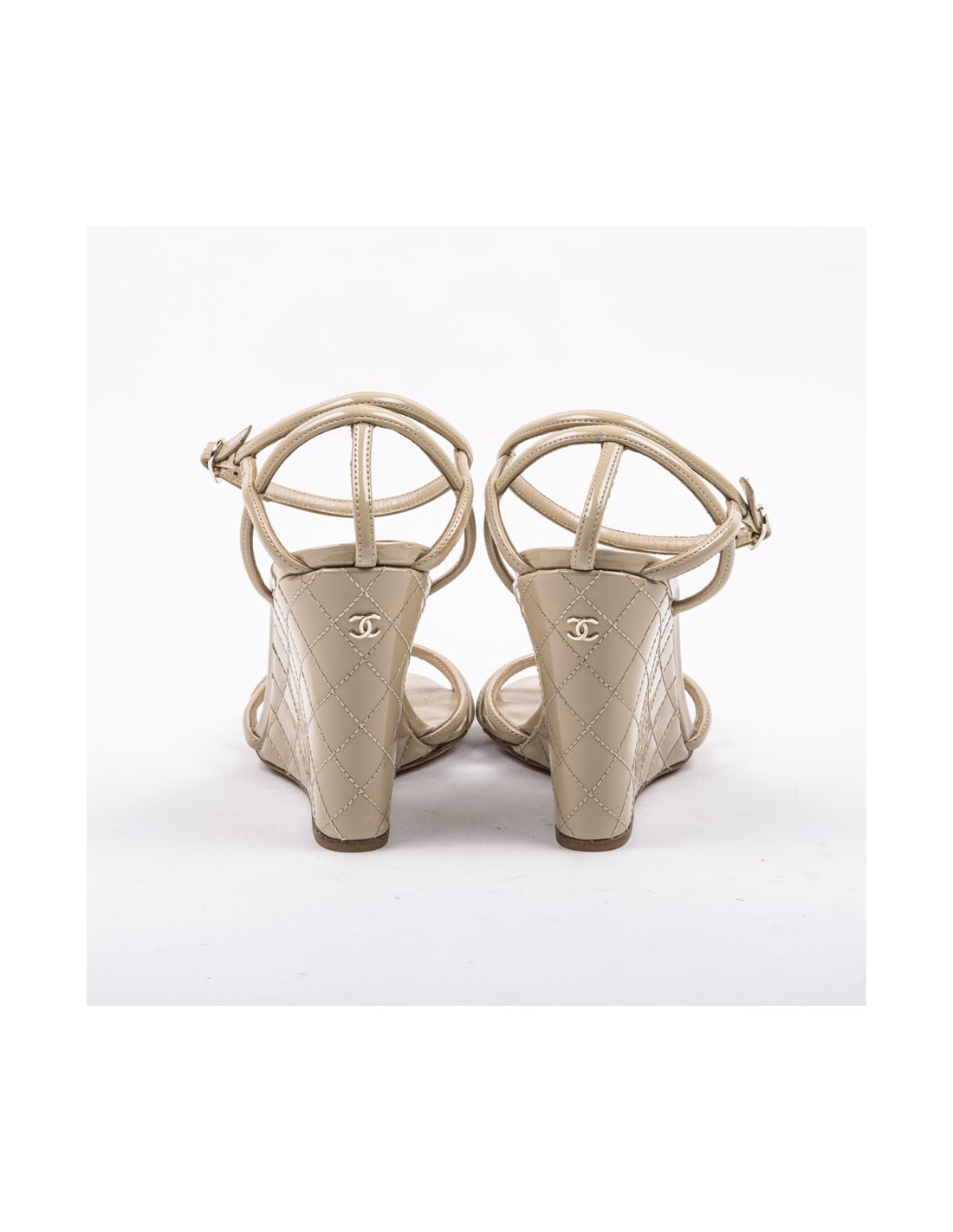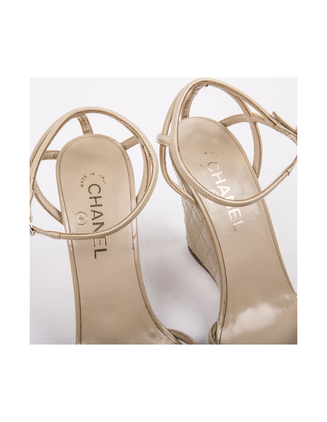 Sandales compensées T 40.5 CHANEL cuir matelassé verni beige