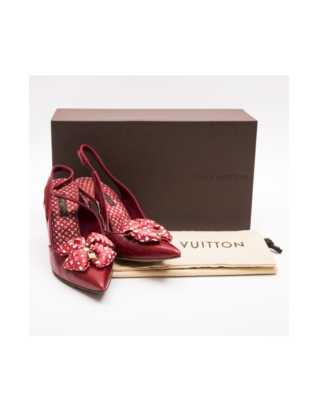 Escarpins T 39.5 LOUIS VUITTON cuir verni alligator rouge et noeud en soie