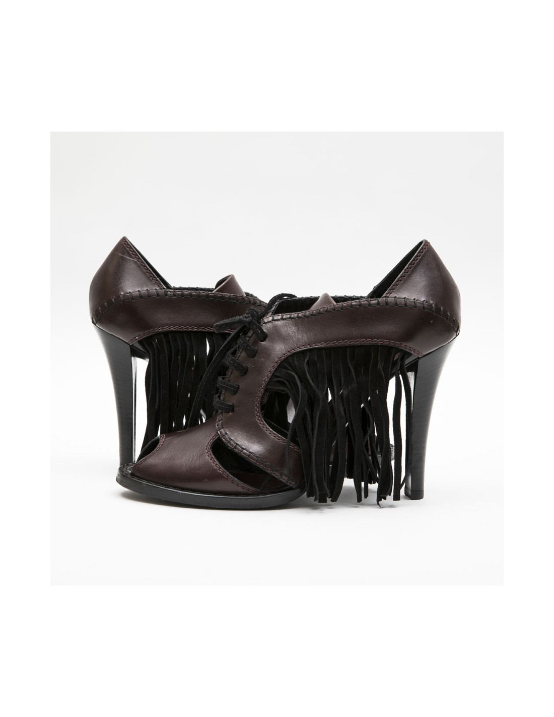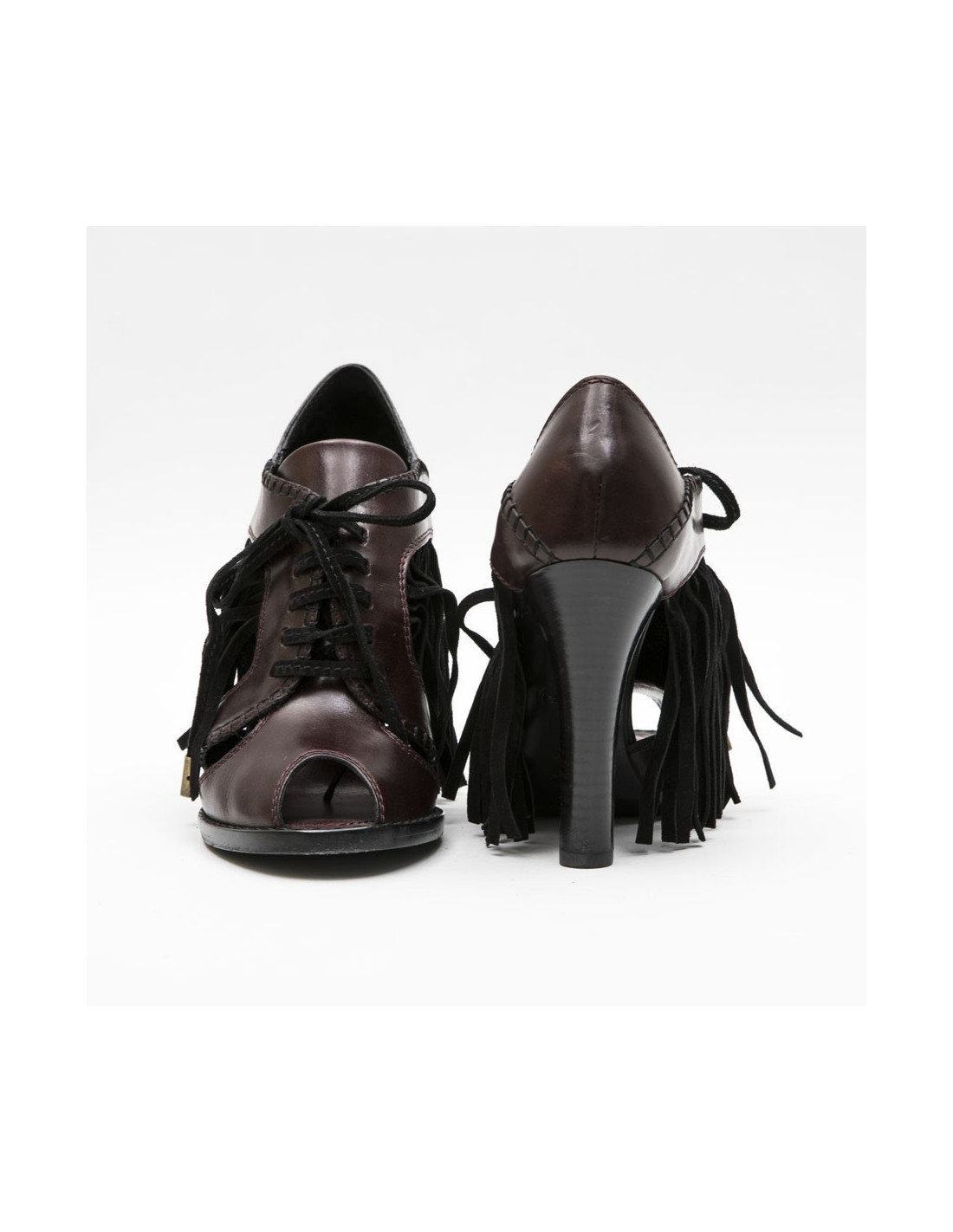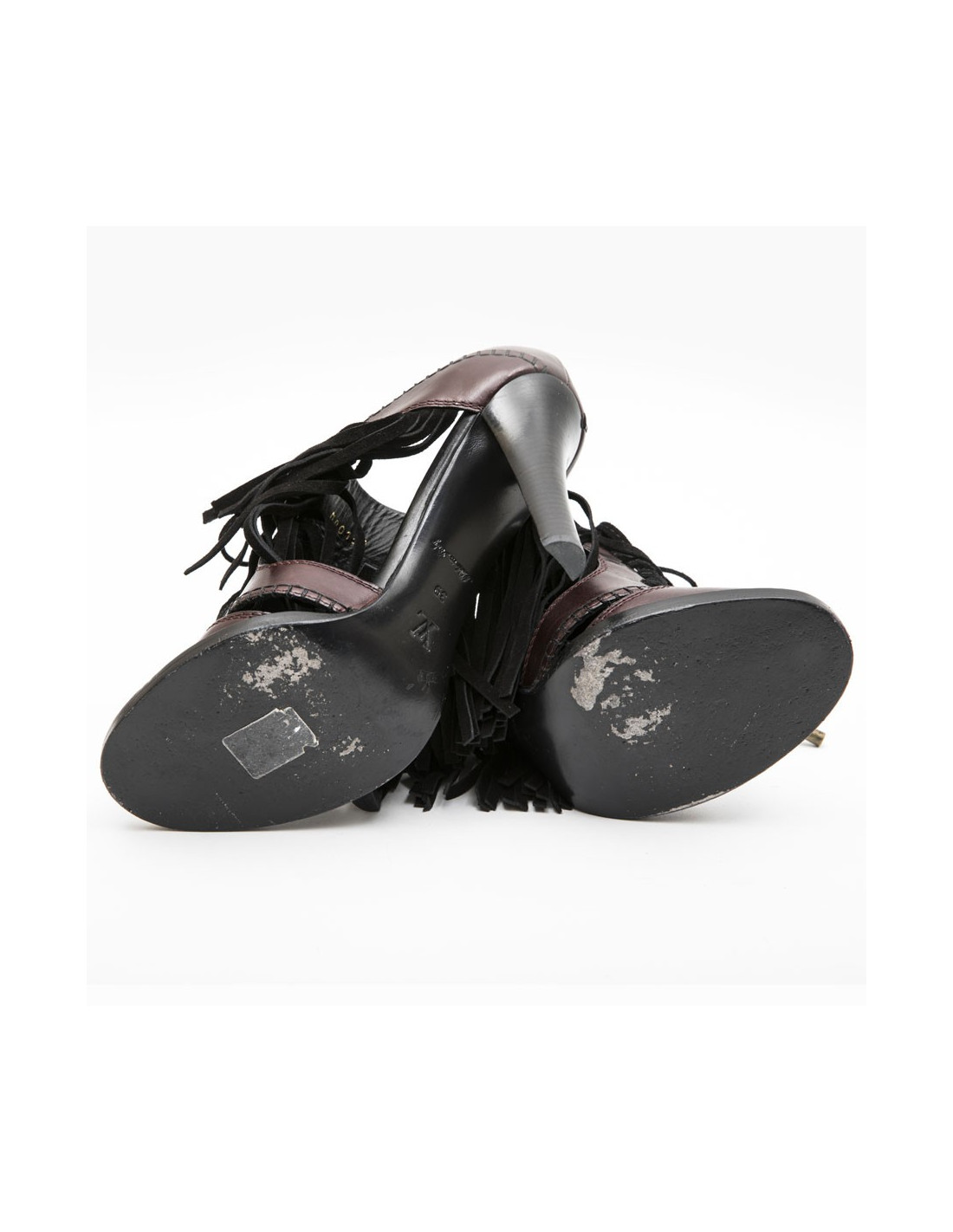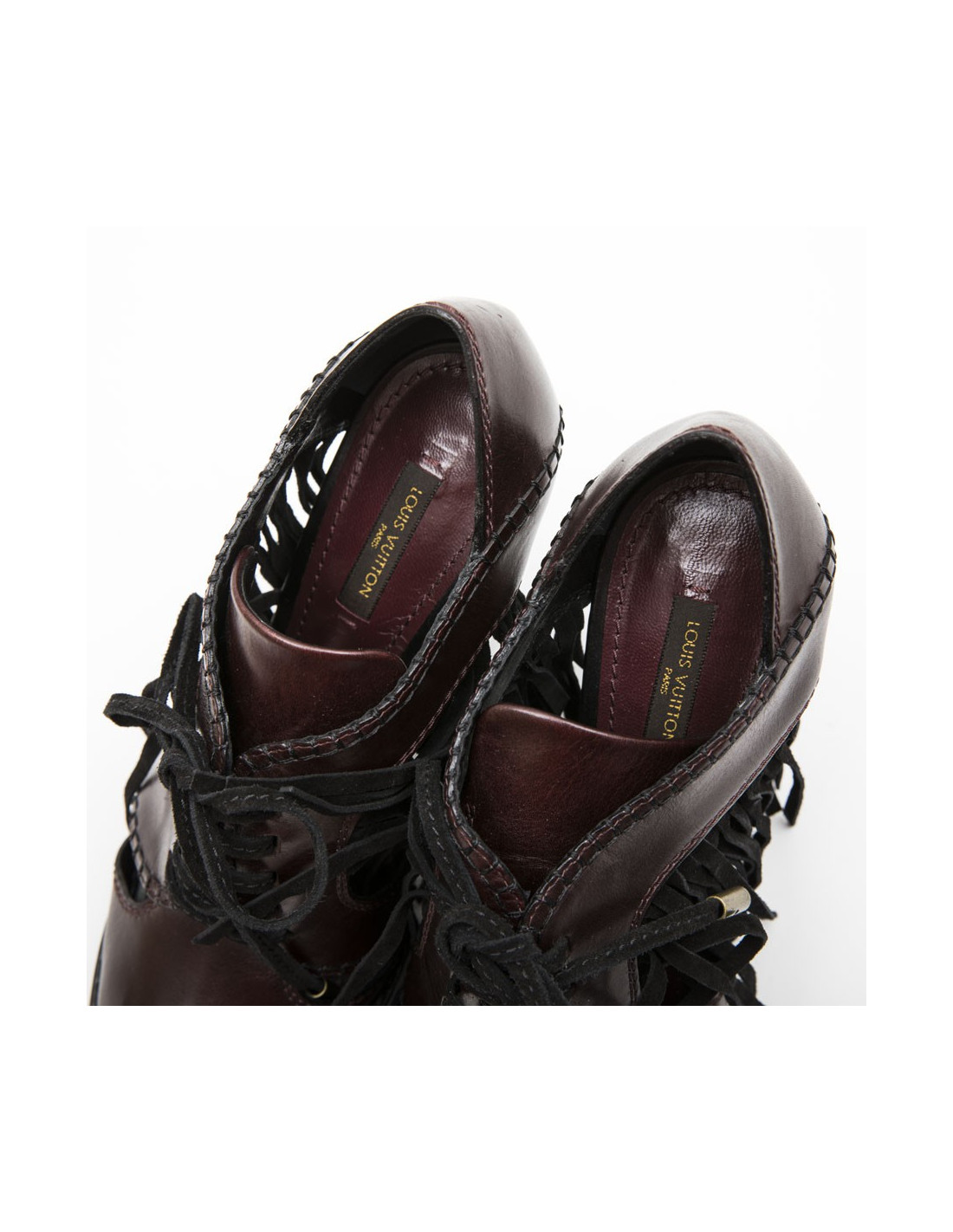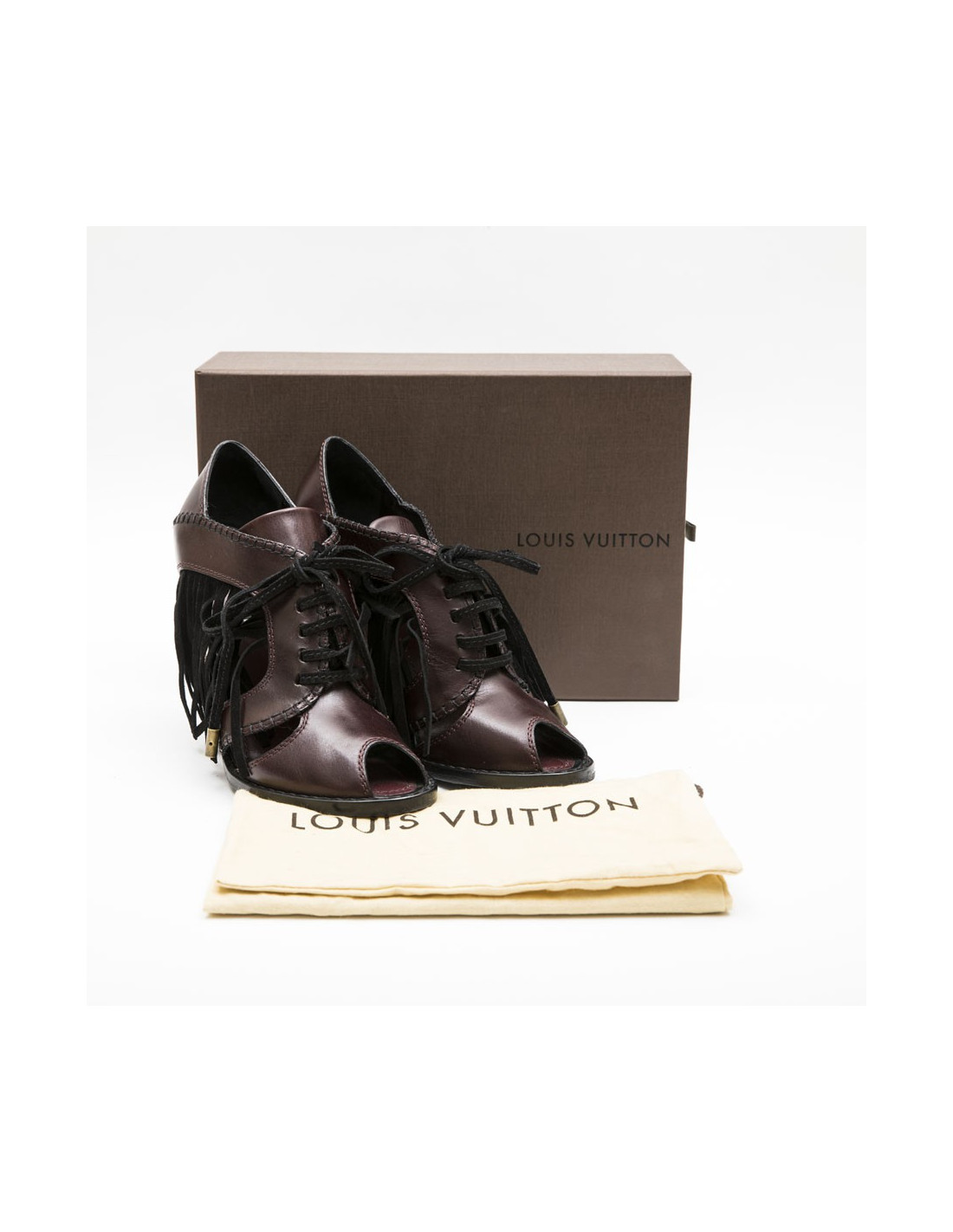 Sandales Hautes T 39 LOUIS VUITTON en cuir prune et franges noires
