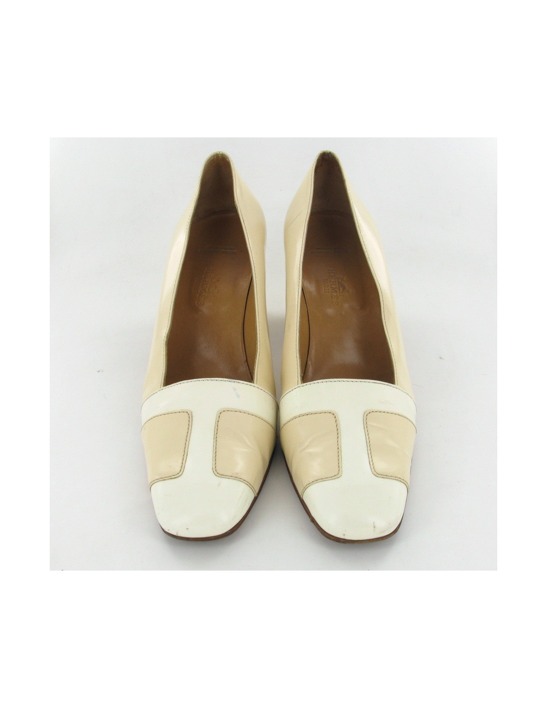Escarpins HERMES T38.5 vintage en cuir vernis beige
