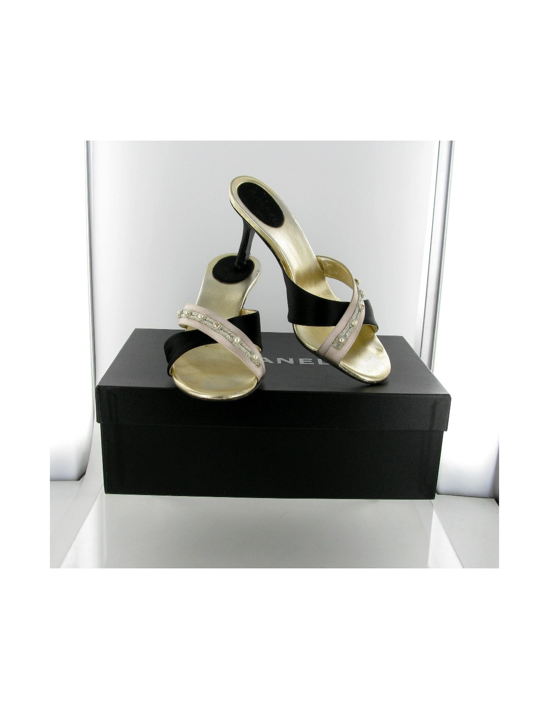 Mules Couture CHANEL t 36 soie noire et champagne