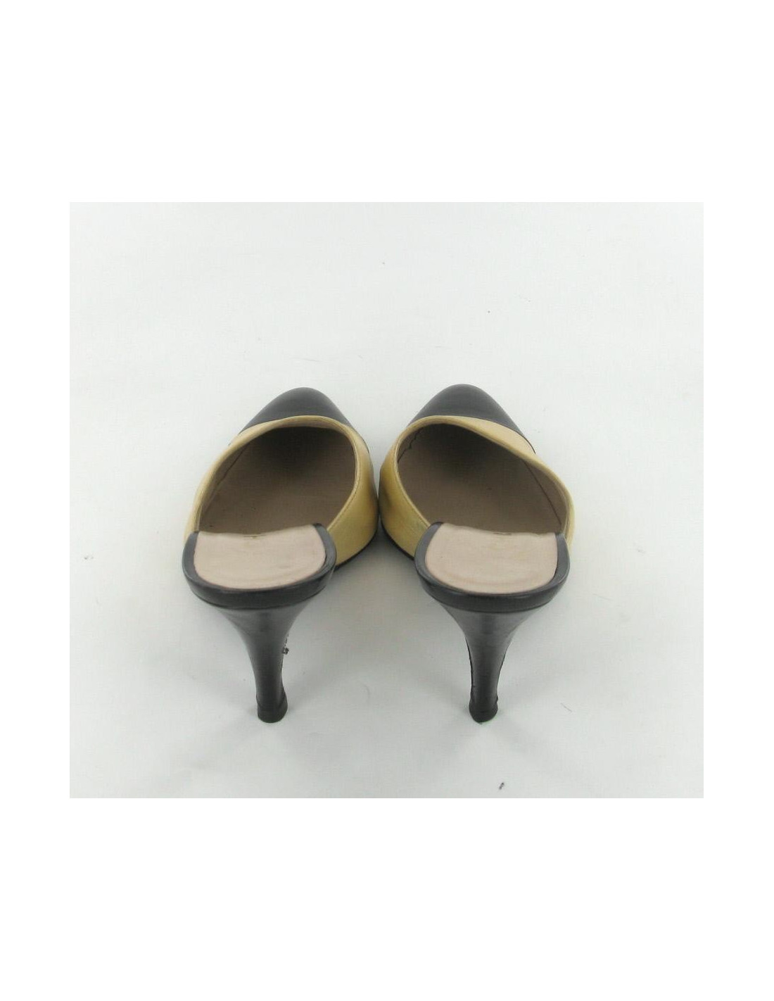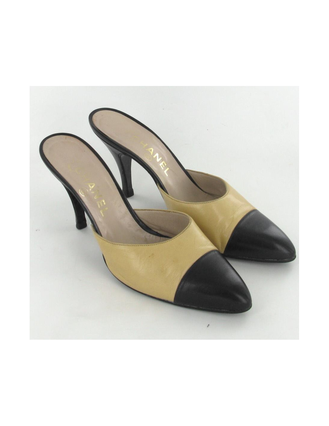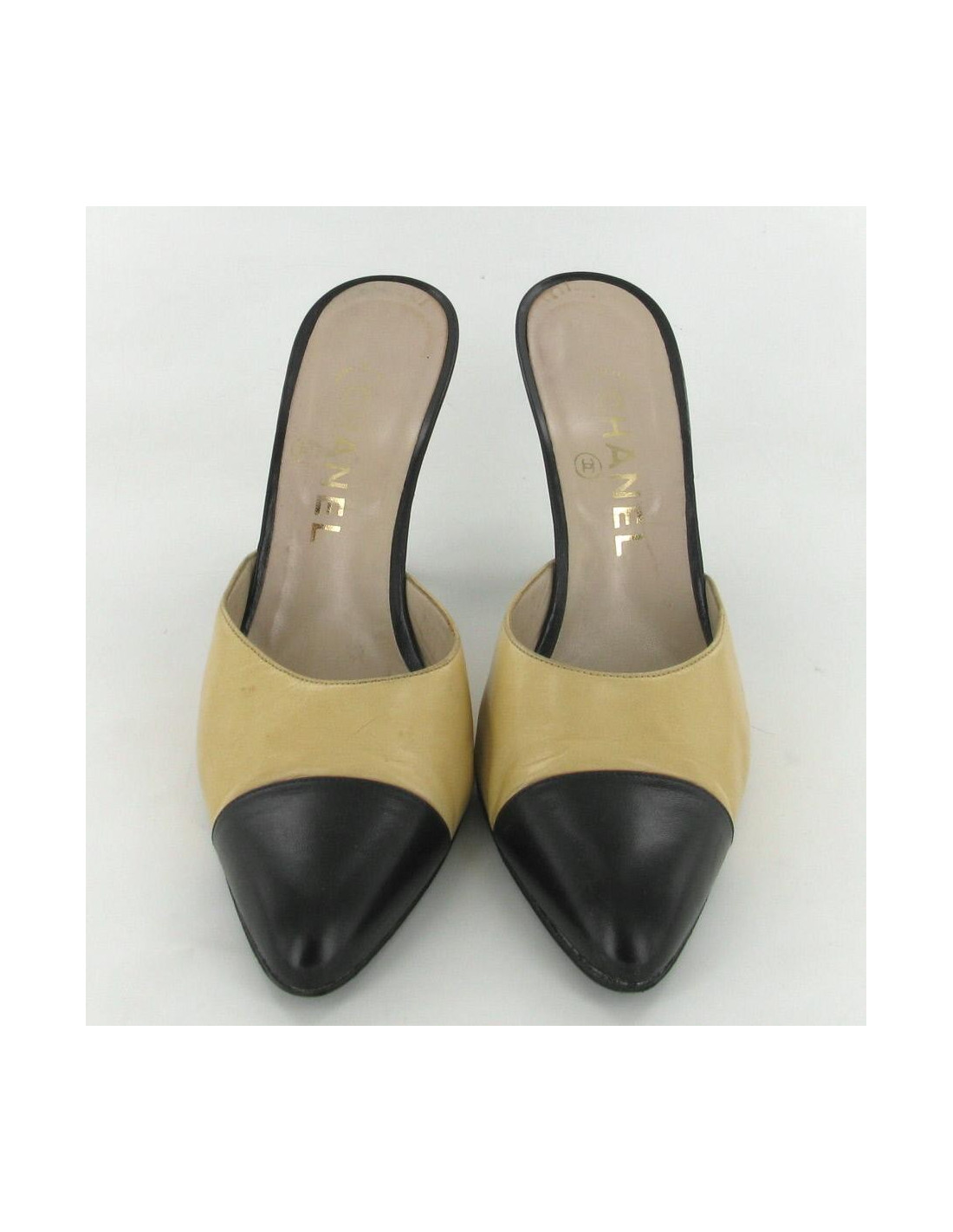 Mules T39.5 CHANEL cuir bicolore beige et noir