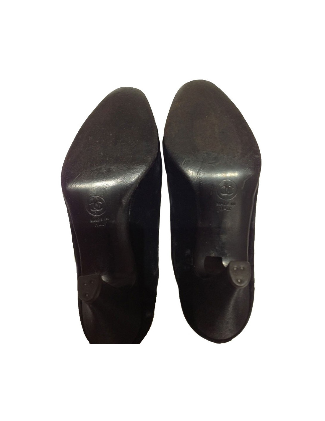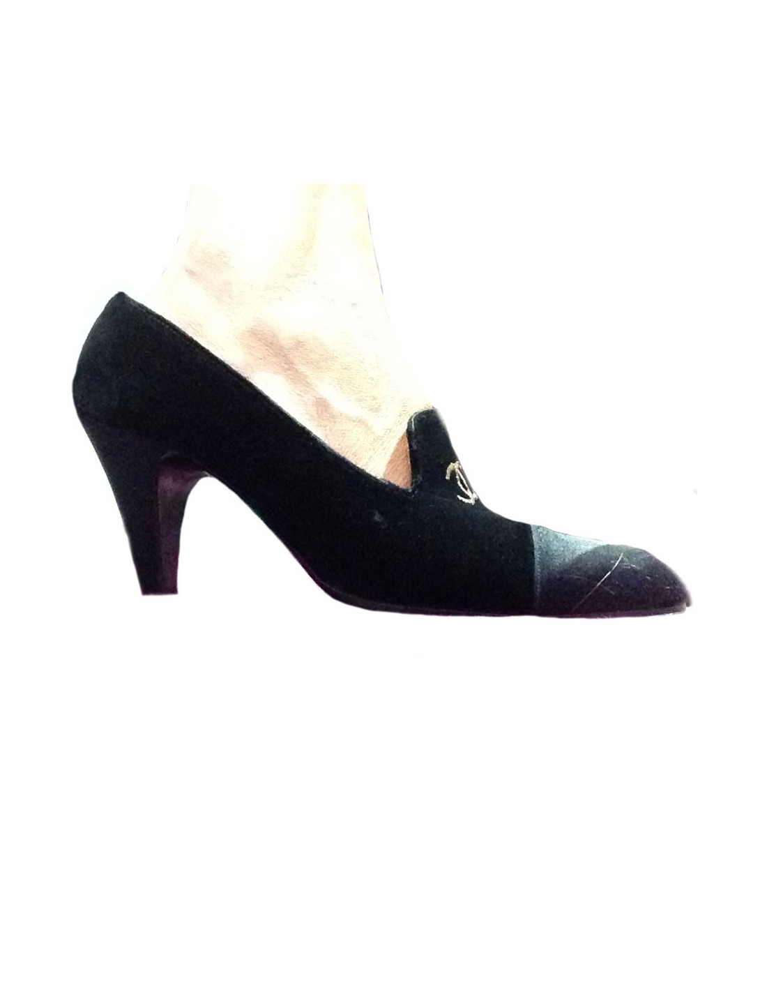 Richelieu CHANEL Couture en panne de velours et satin noir CC brodé T9 US