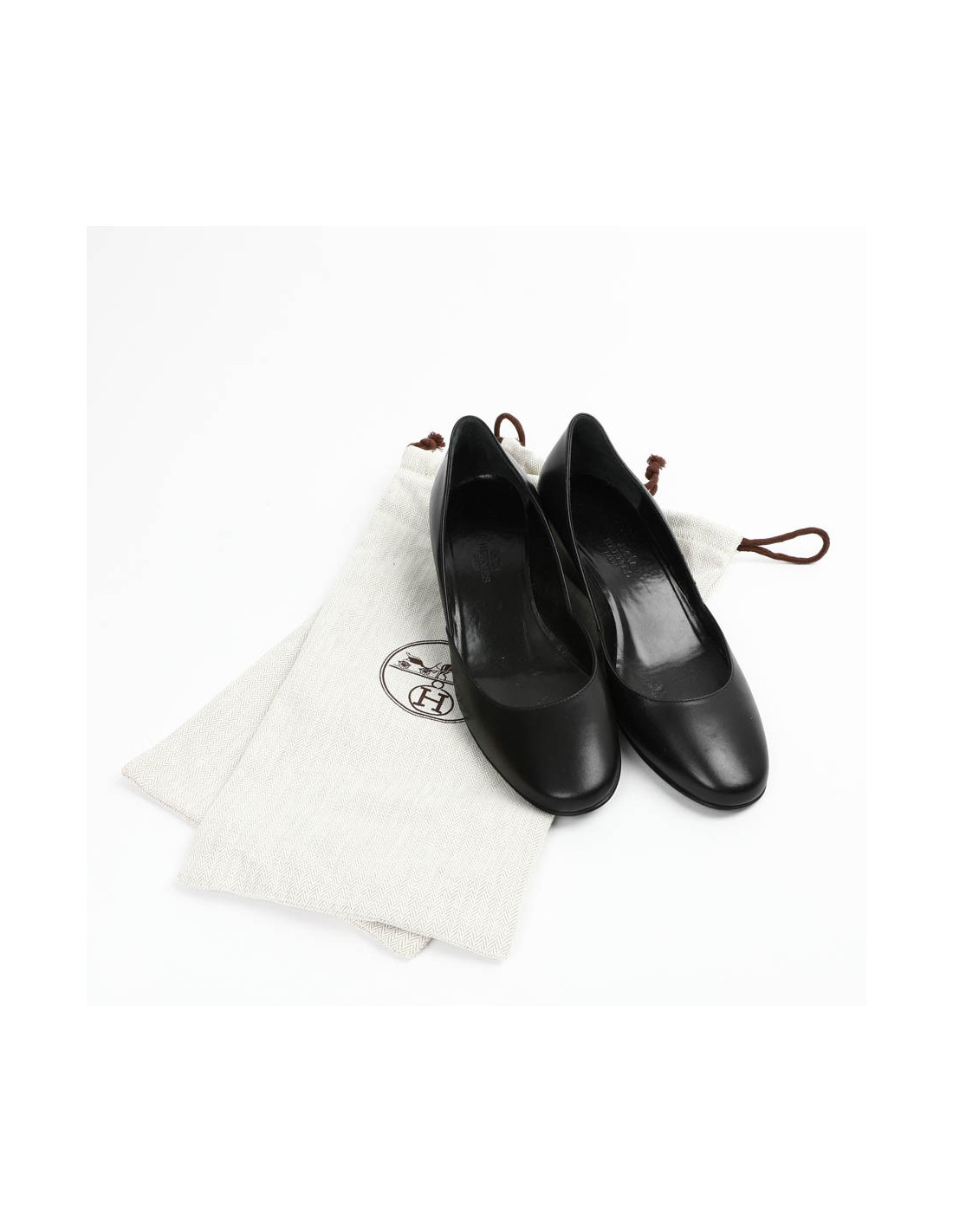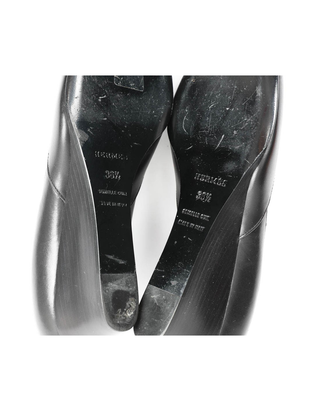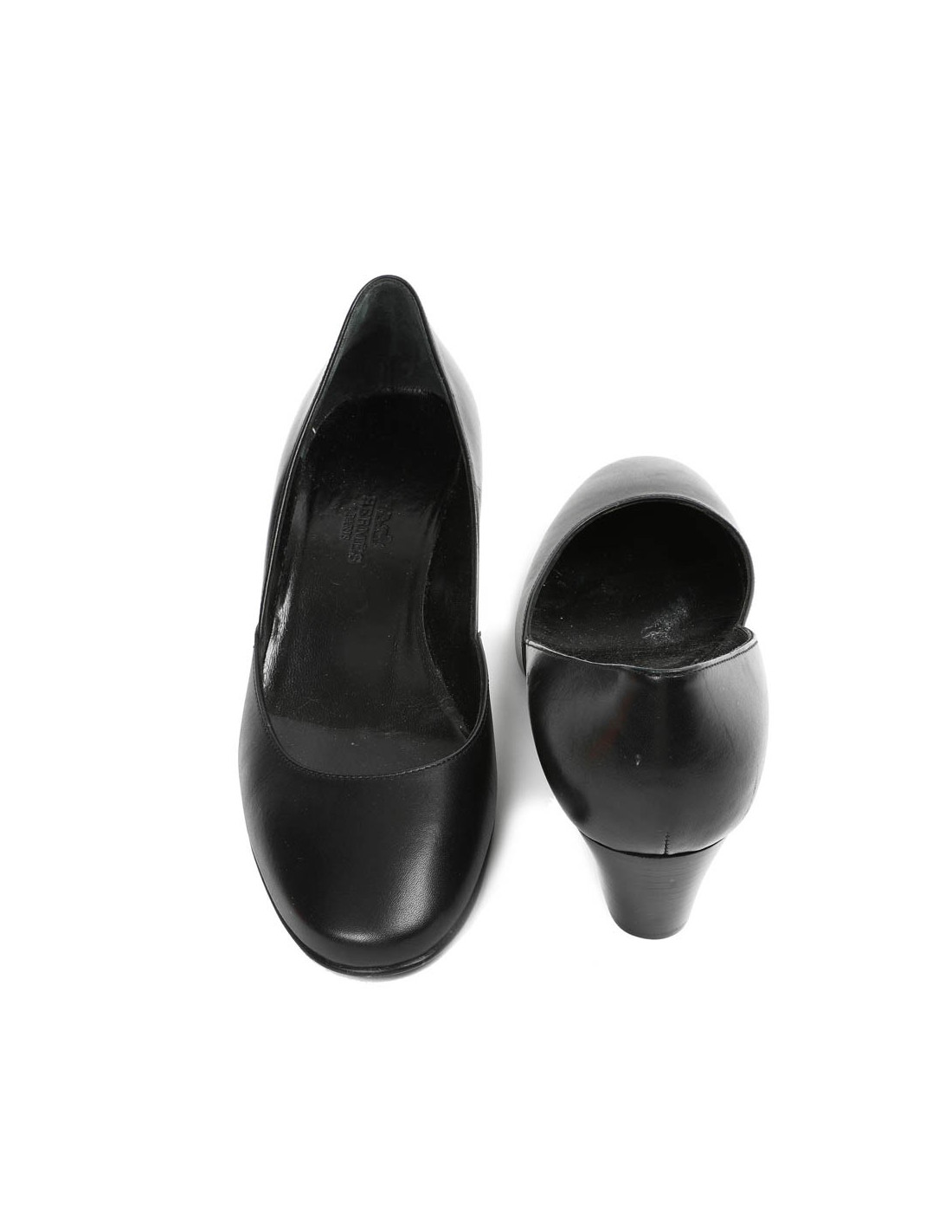 Ballerines compensées HERMES cuir noir
