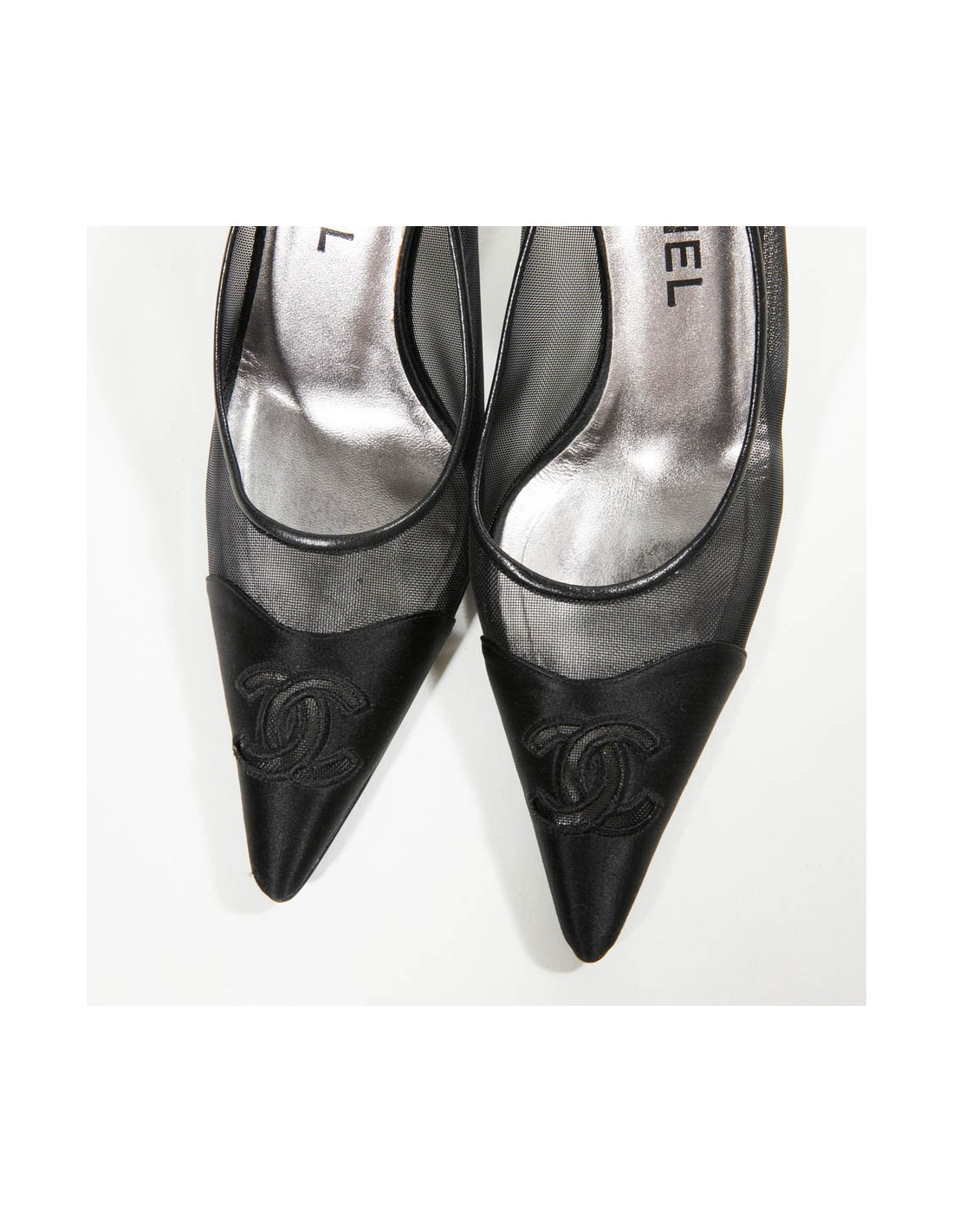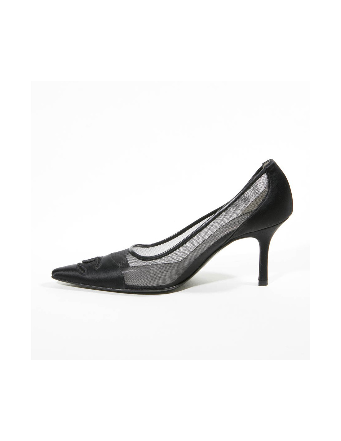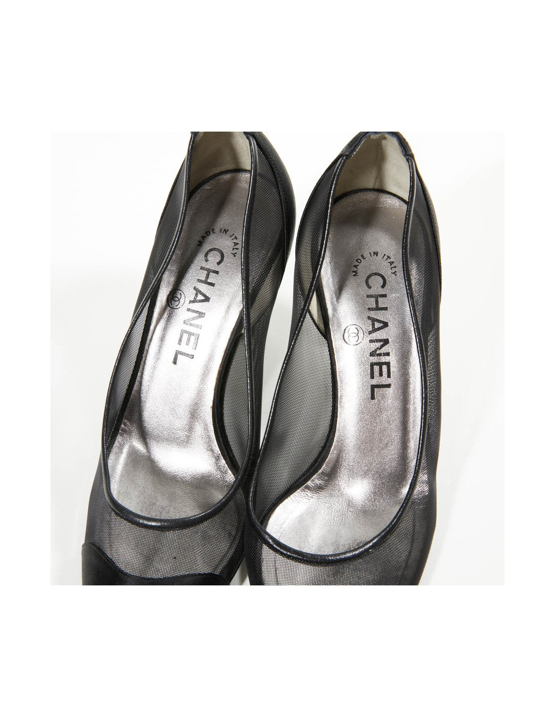 Escarpins T 36.5 CHANEL satin et toile grillagée plastifiée