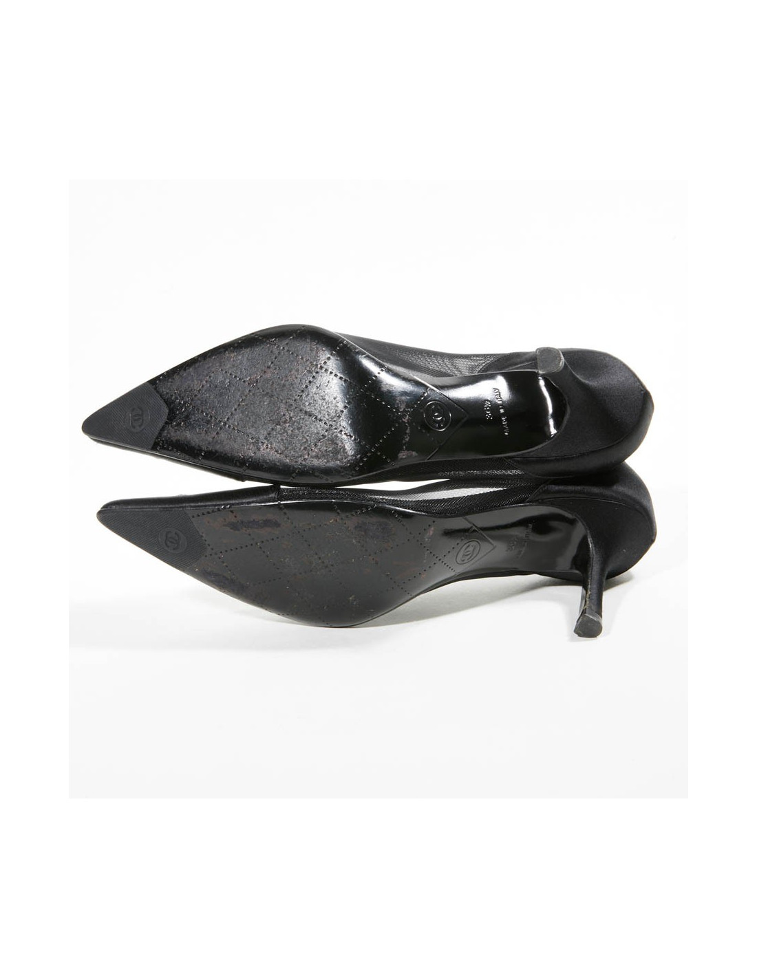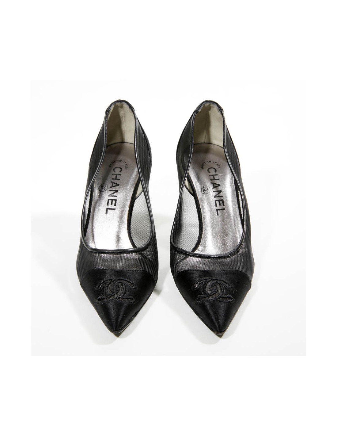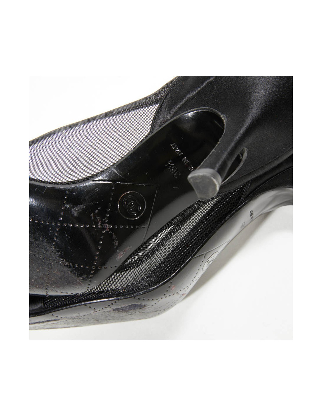 Escarpins T 36.5 CHANEL satin et toile grillagée plastifiée