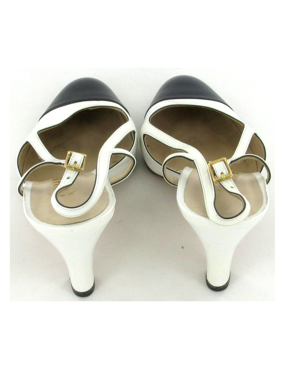 Escarpins CHANEL en cuir blanc et bleu marine T 38,5
