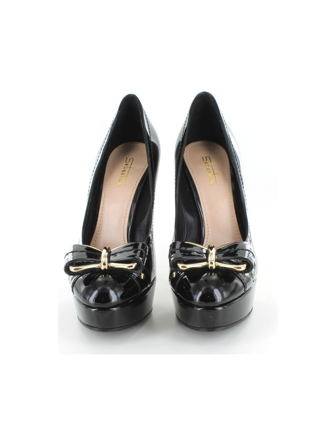 Escarpins SEBASTIAN en cuir verni noir, taille 38.
