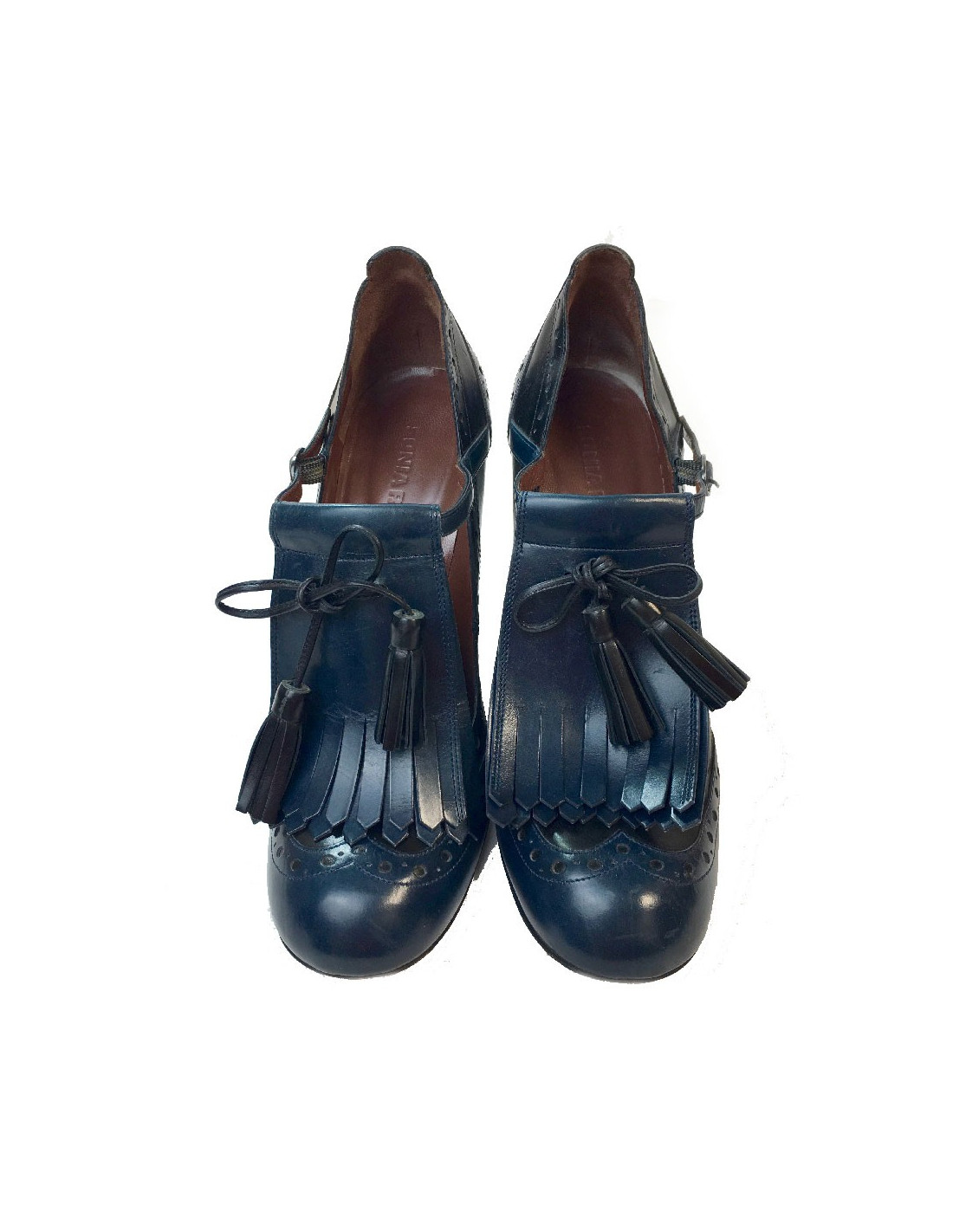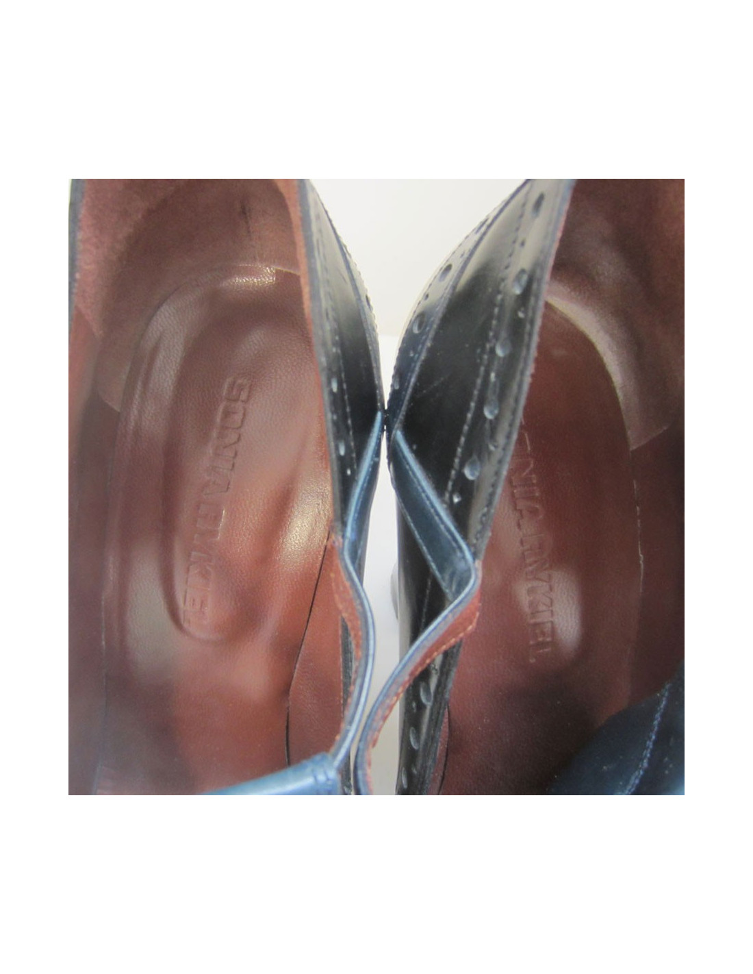 Superbes escarpins Richelieu Sonia Rykiel cuir noir à bouts fleuris T38,5 bicolore, en cuir noir et bleu marine, en très bon état