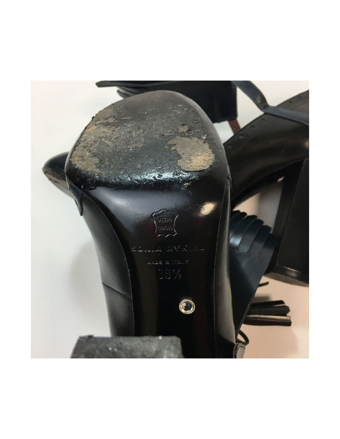 Escarpins T 38,5 à bouts fleuris bicolore SONIA RYKIEL cuir noir