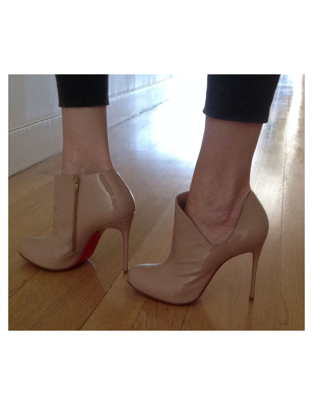 Boots T38 CHRISTIAN LOUBOUTIN, en cuir verni. Elles ont été très peu portées, quelques traces sur le vernis, donc en bon état. couleur vieux rose.