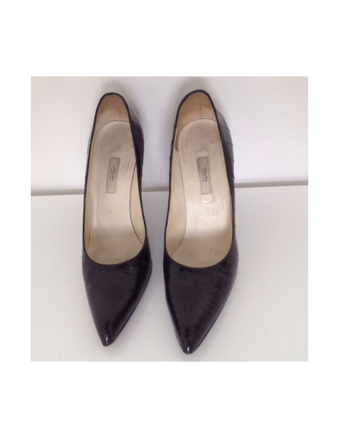 Escarpins T 37 PRADA en crocodile noir