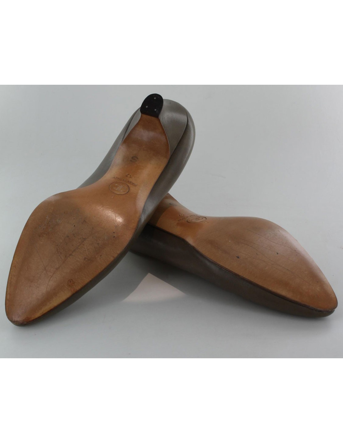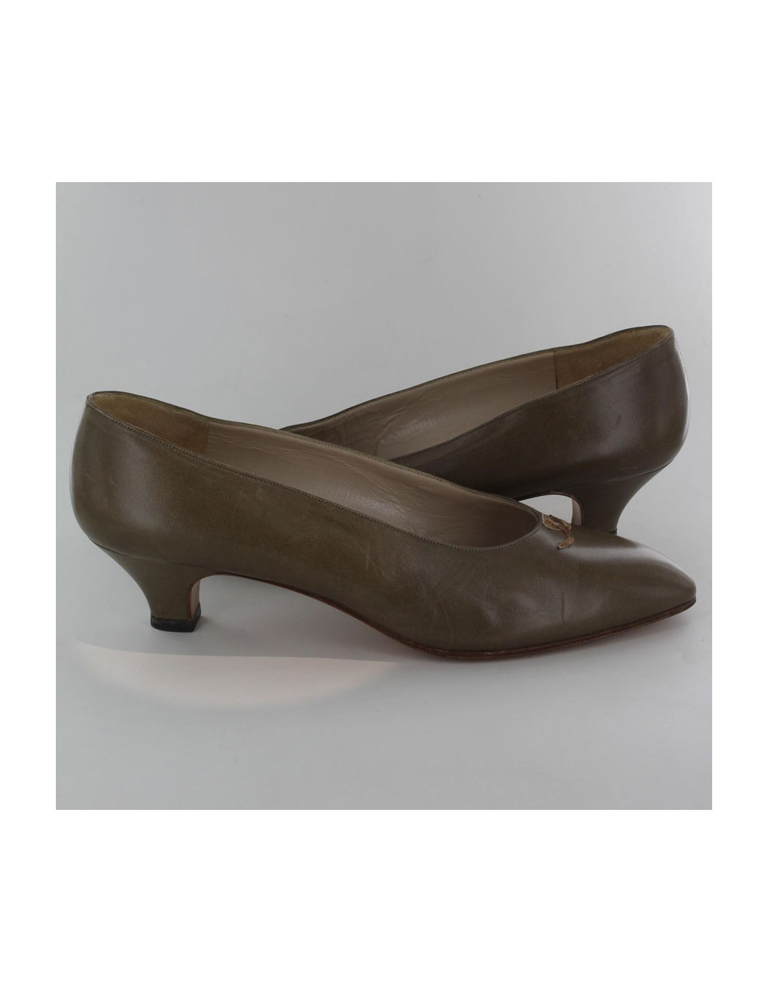 Escarpins Chanel, à petits talons, en cuir de couleur kaki