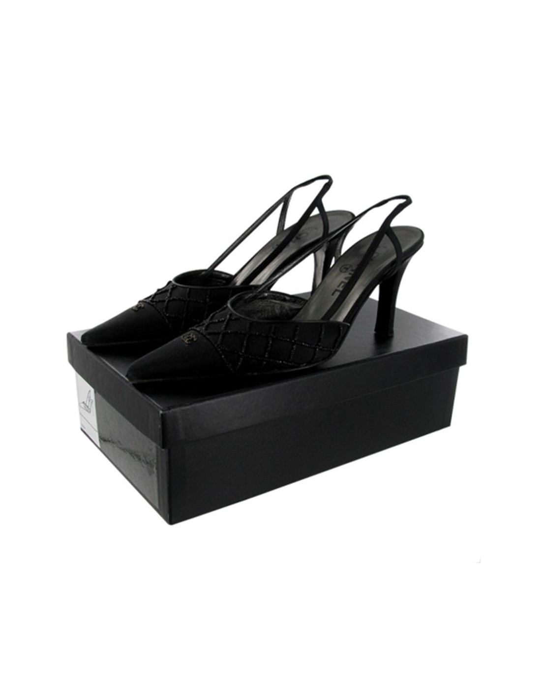 Elles sont erties d'un "CC" en Swarovski noir. Semelle intérieure cuir bronze.