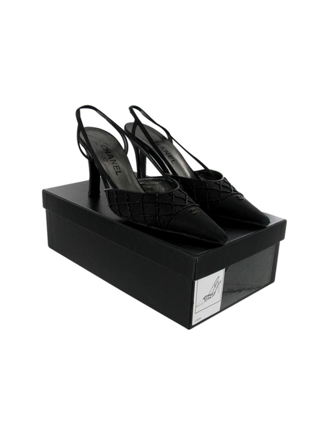 Ce sont des sandales Couture T 36.5 CHANEL en satin de soie et finalement brodées de perles noires