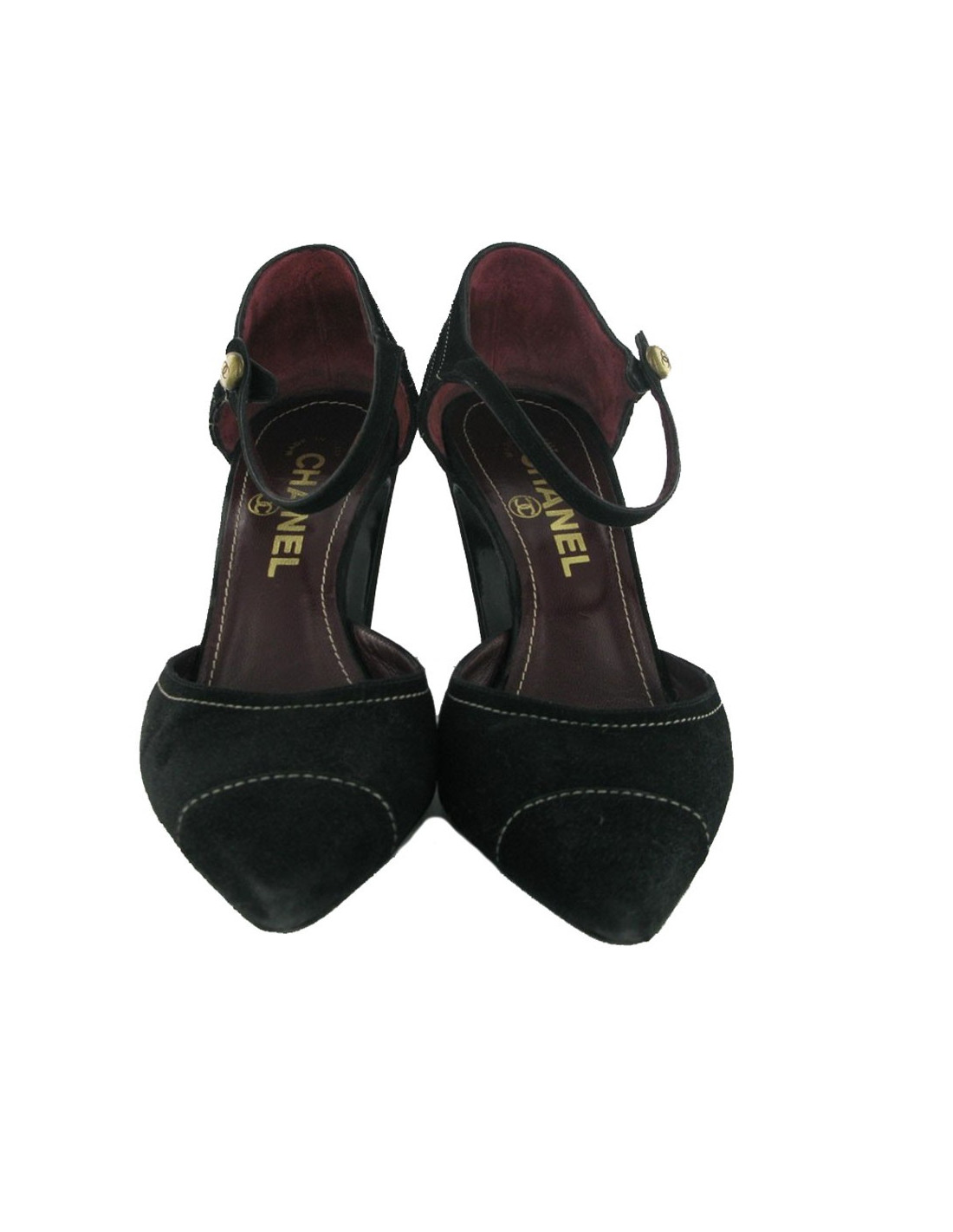 Jolis escarpins en daim noir T 36.5 CHANEL