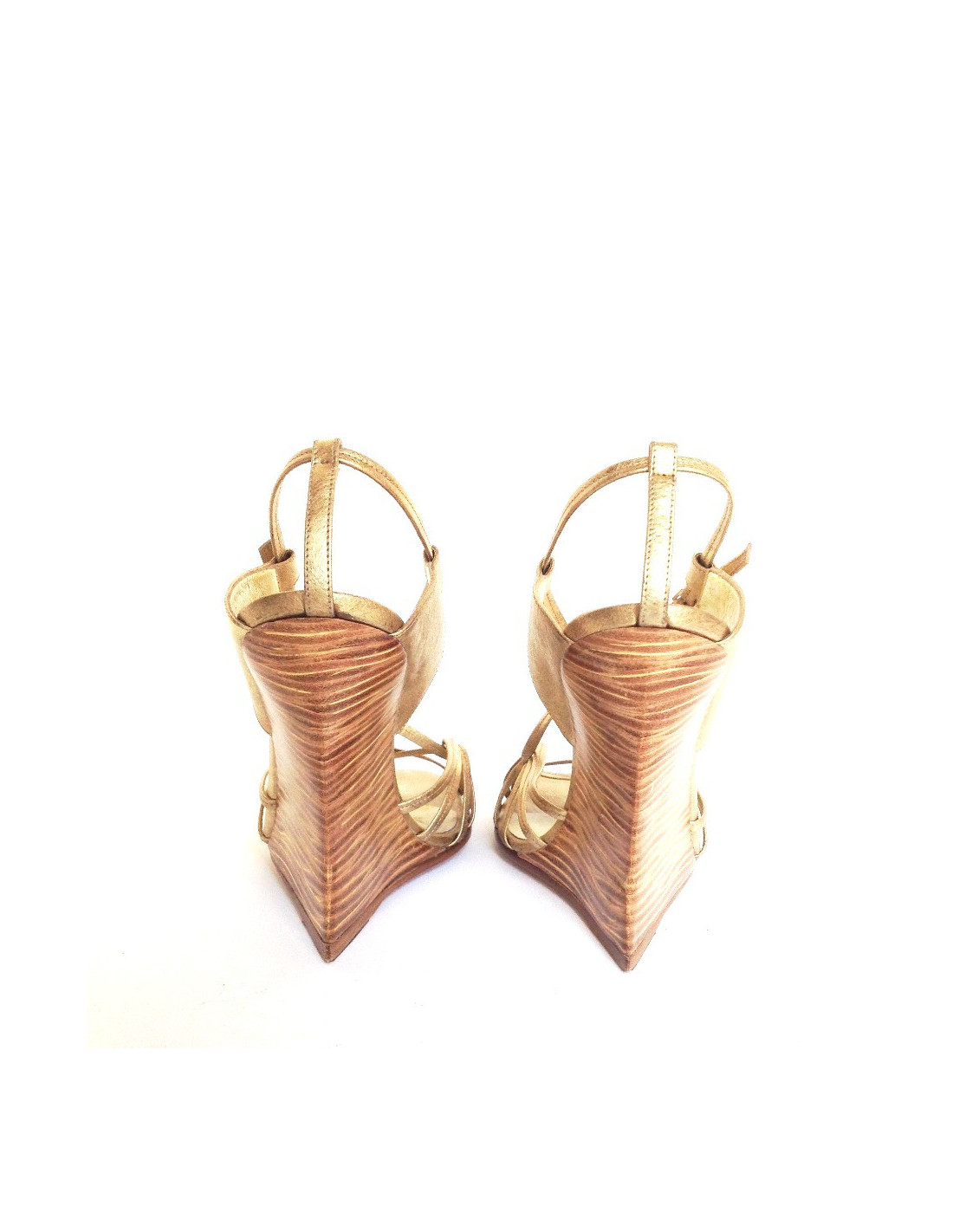 Collector ! Sandales compensées YVES SAINT LAURENT T40 dorées en très bon état, portées une fois.