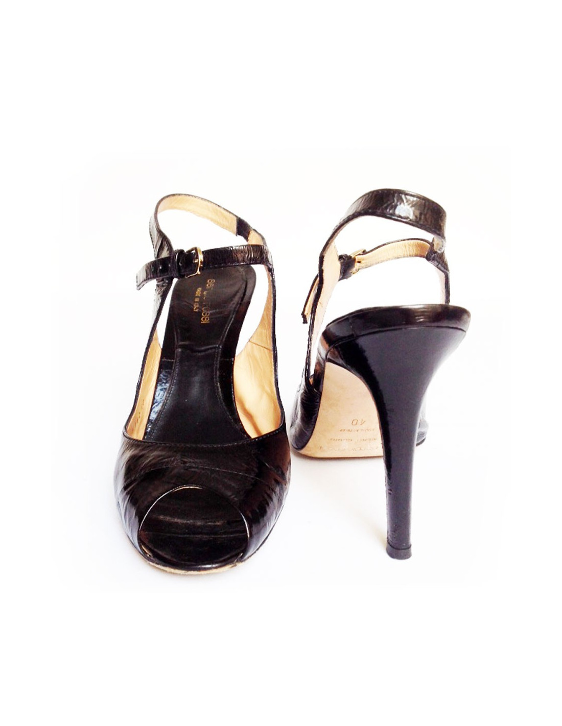 Escarpins Sergio Rossi Taille 40 en cuir verni vieilli noir.
