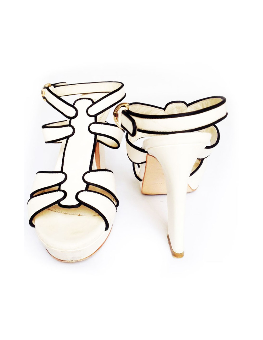 Très jolies open toes Sergio Rossi en cuir blanc crème et liserets noirs T38.