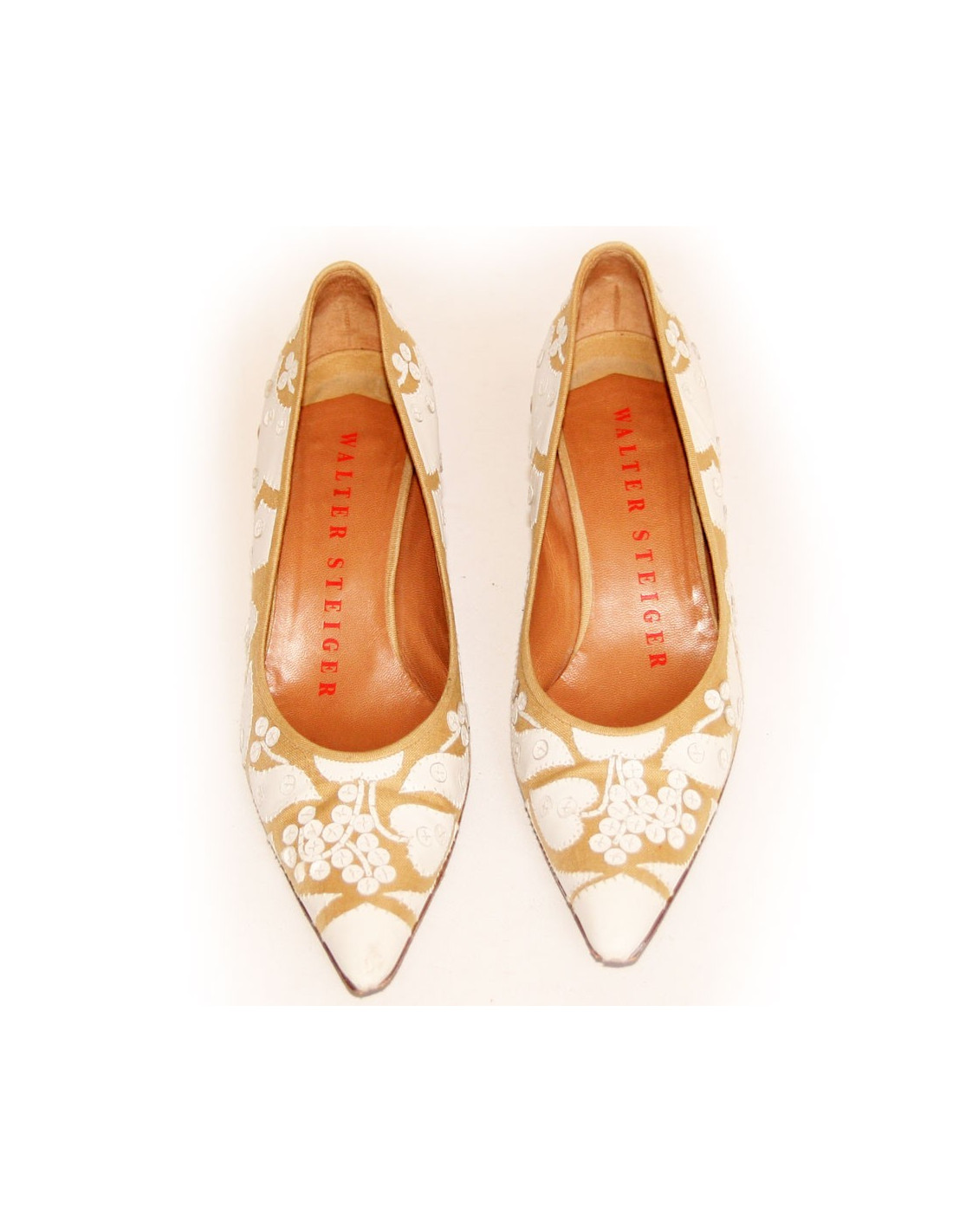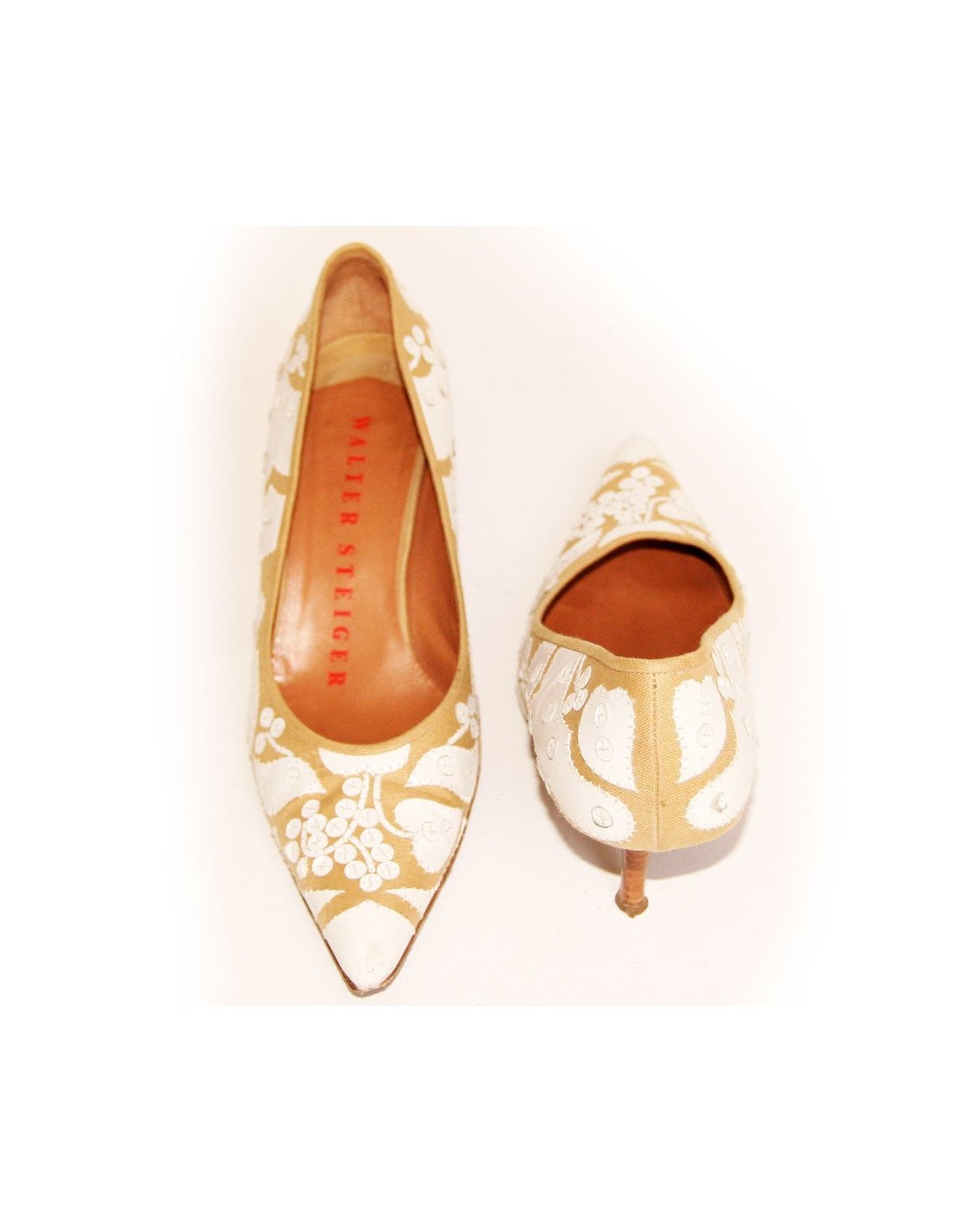 Escarpins WALTER STEIGER cuir et raphia marron et blanche