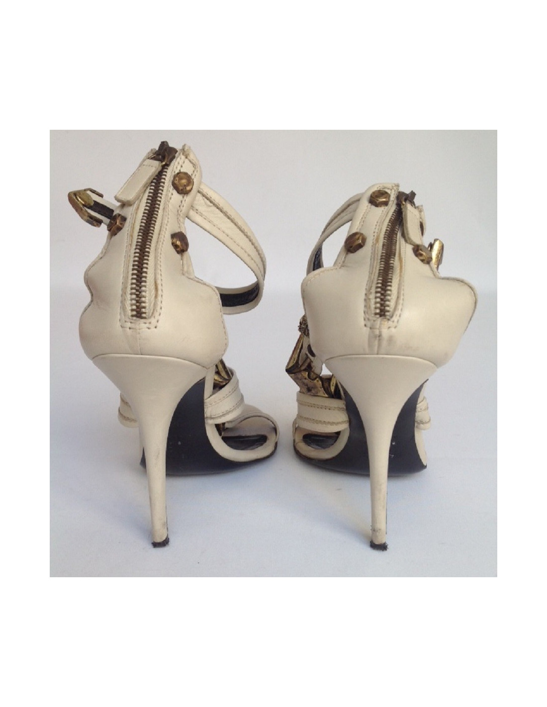 Sandales hautes en cuir blanc gris BALMAIN T38,5