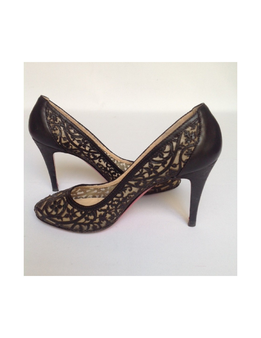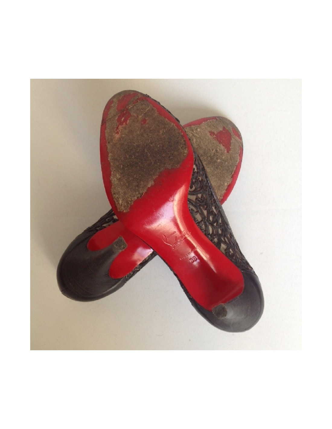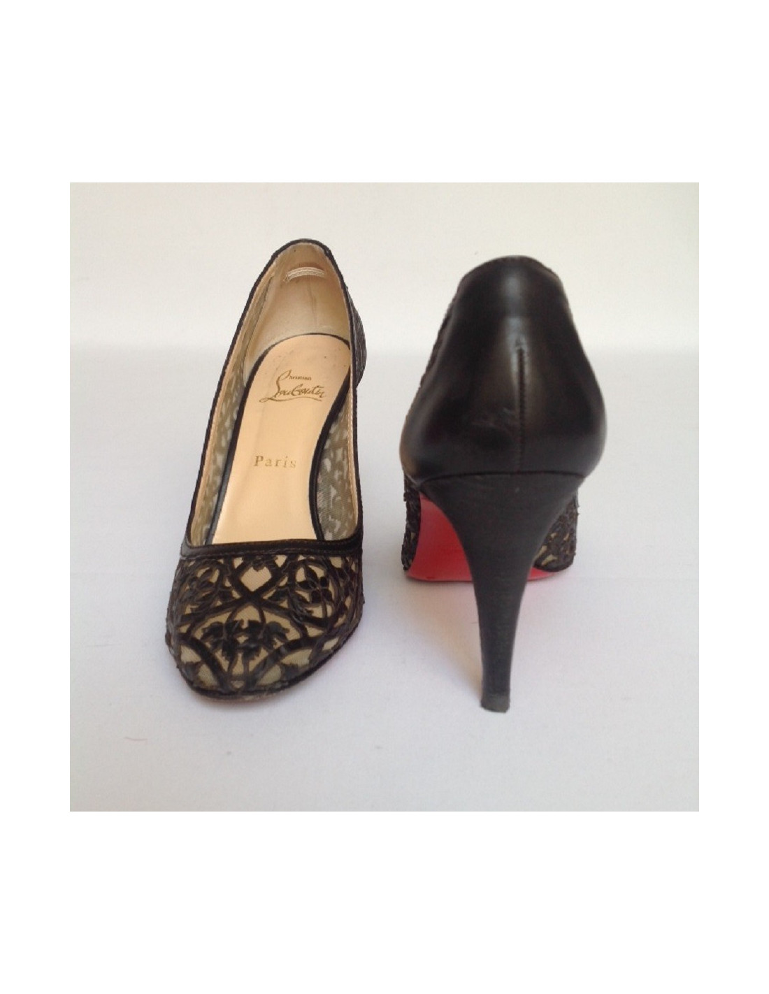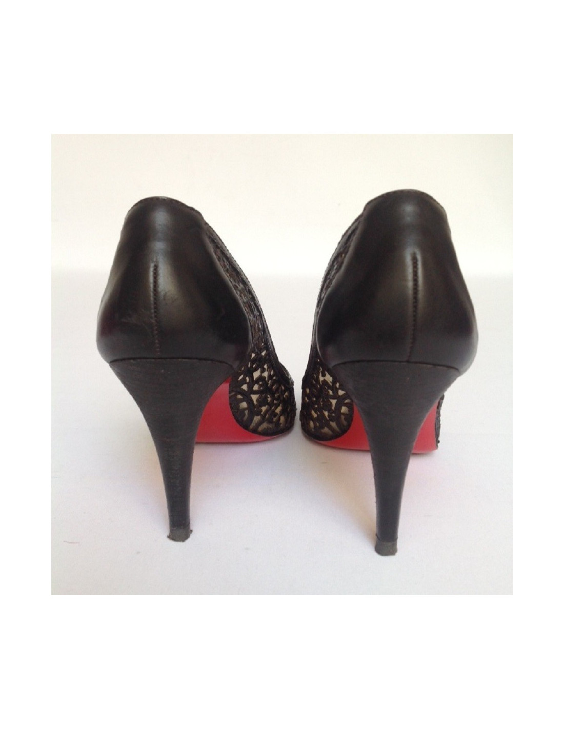 Escarpins en cuir noir façon dentelle de la fameuse marque Christian Louboutin T 38
