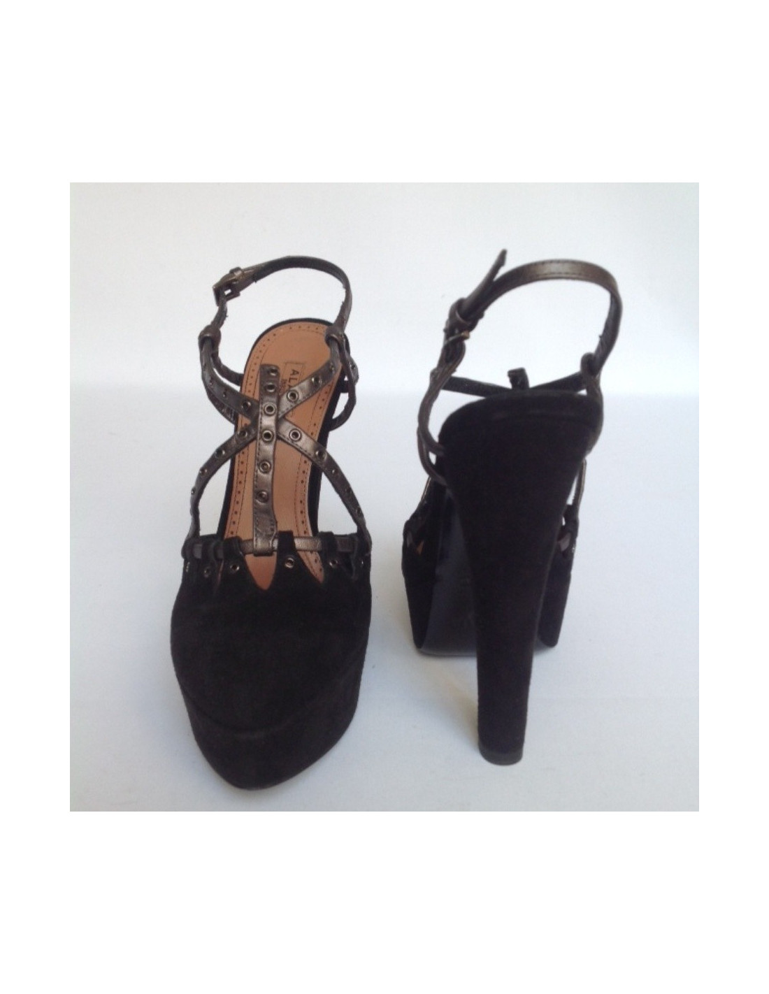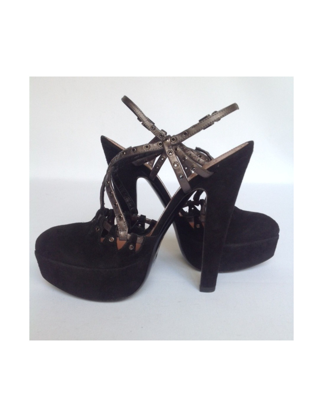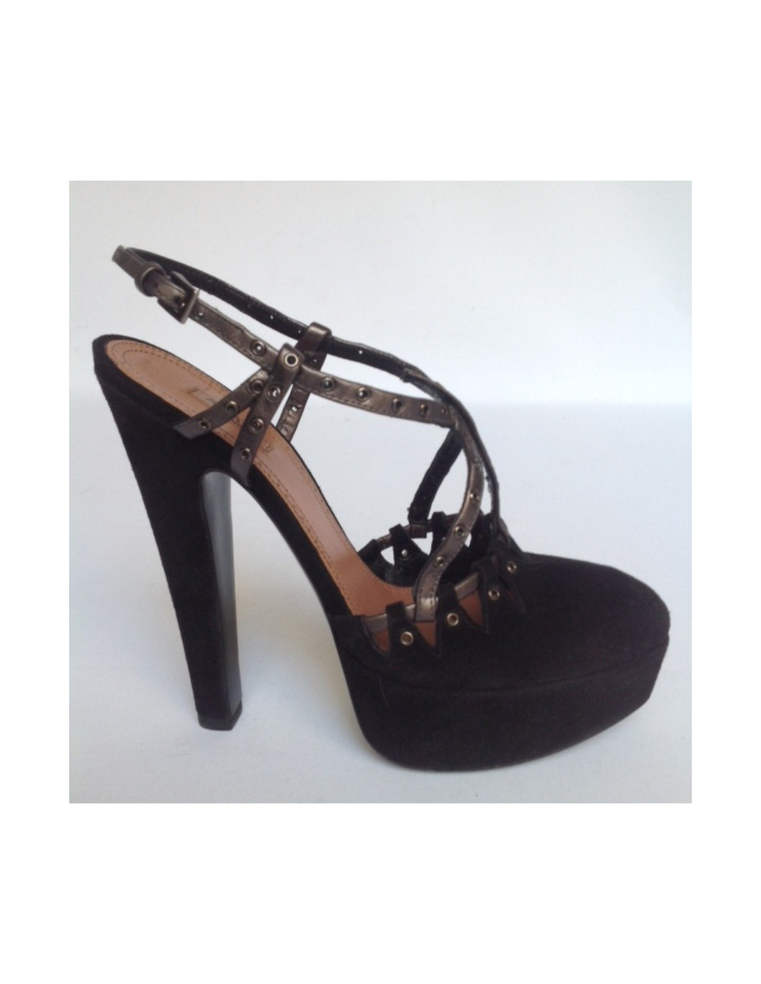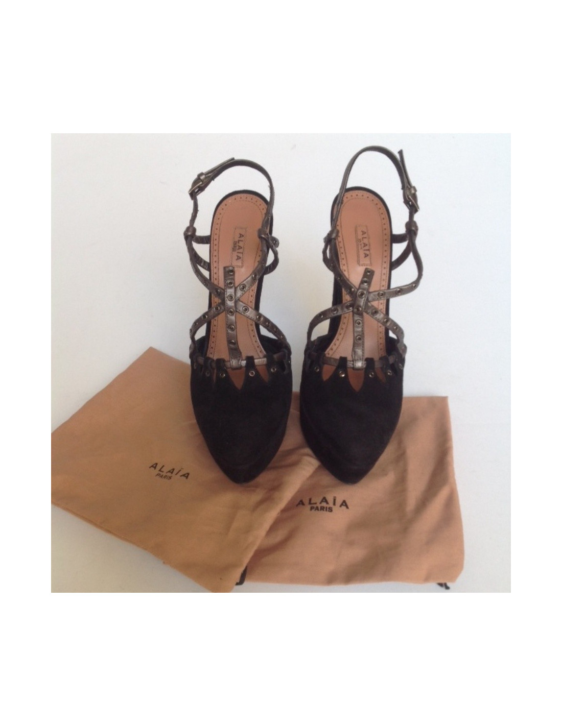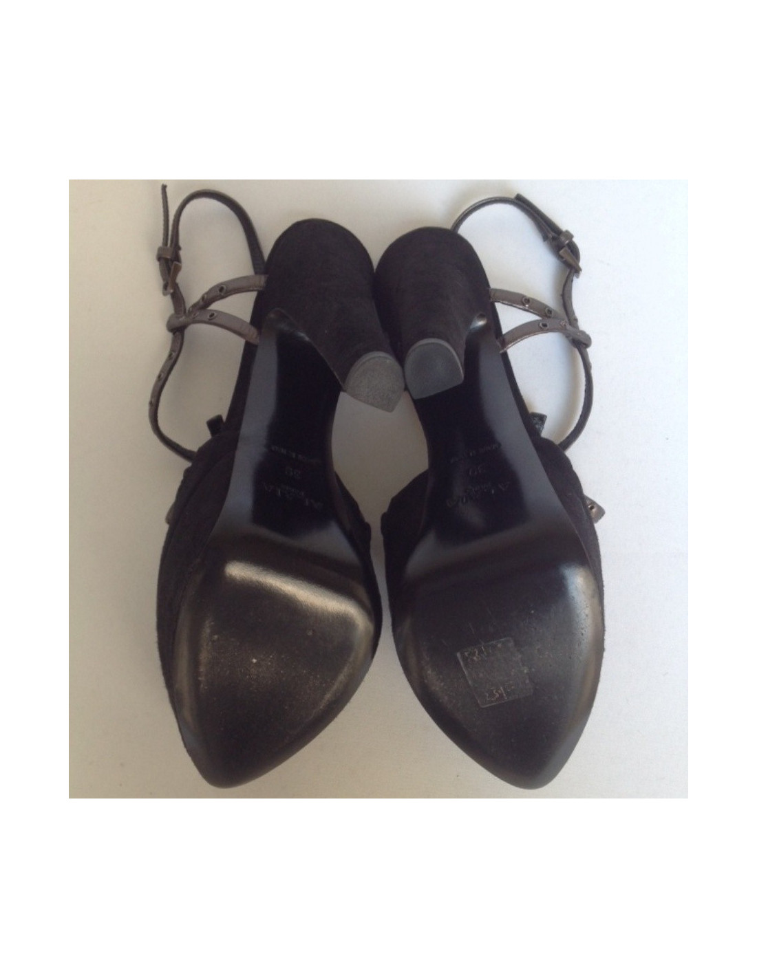 Superbe! Paire de sandales hautes en veau-velours noir Alaia T39. En très bon état.