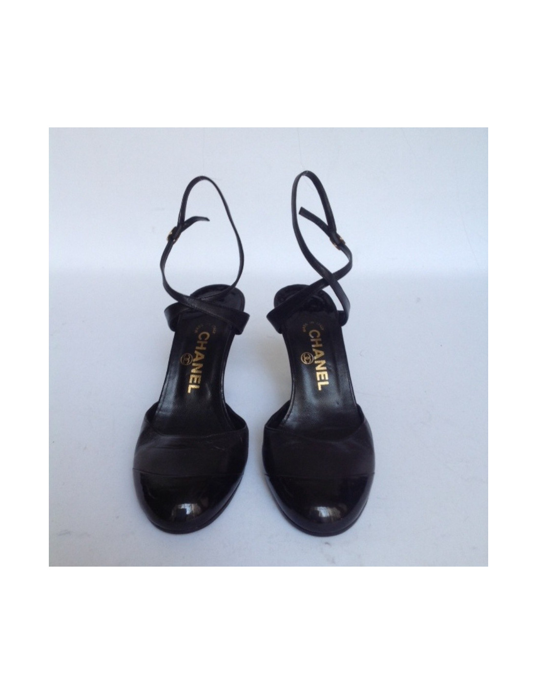 Escarpins CHANEL T37.5 cuir verni noir